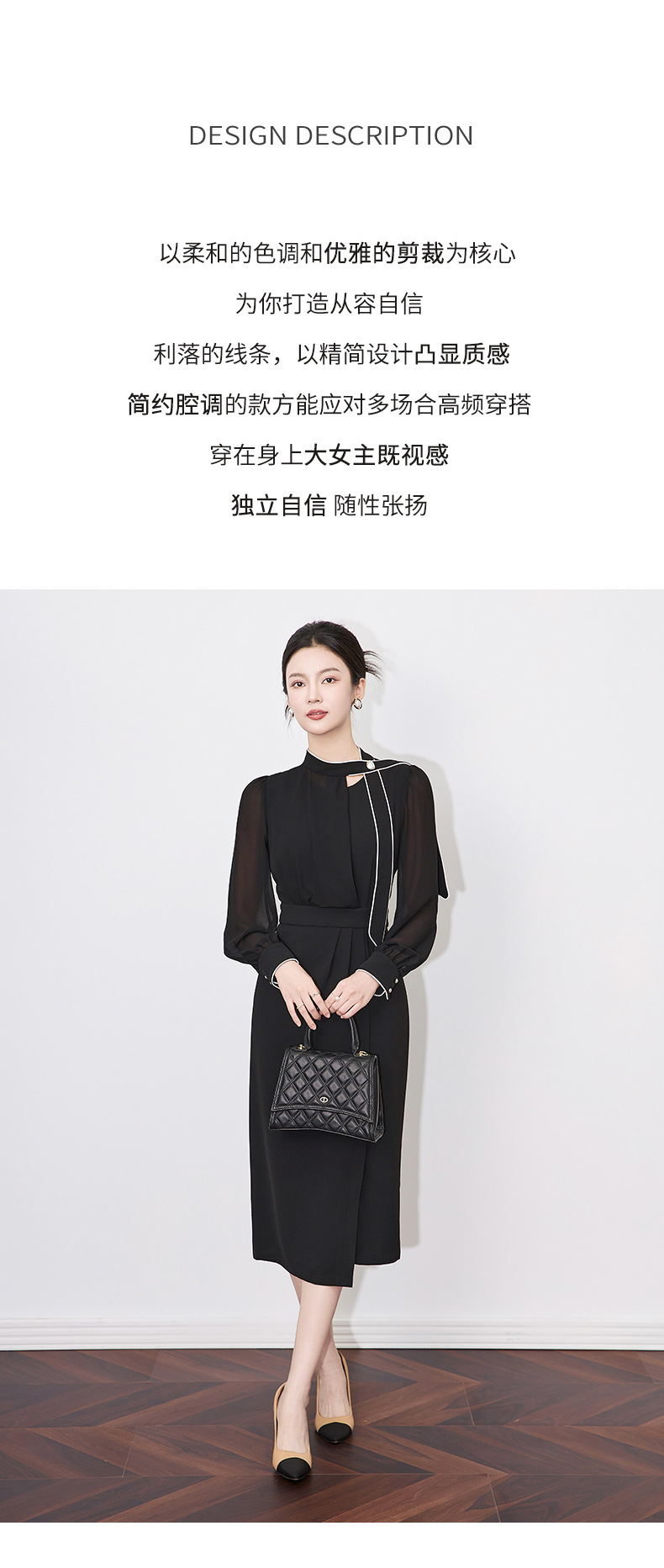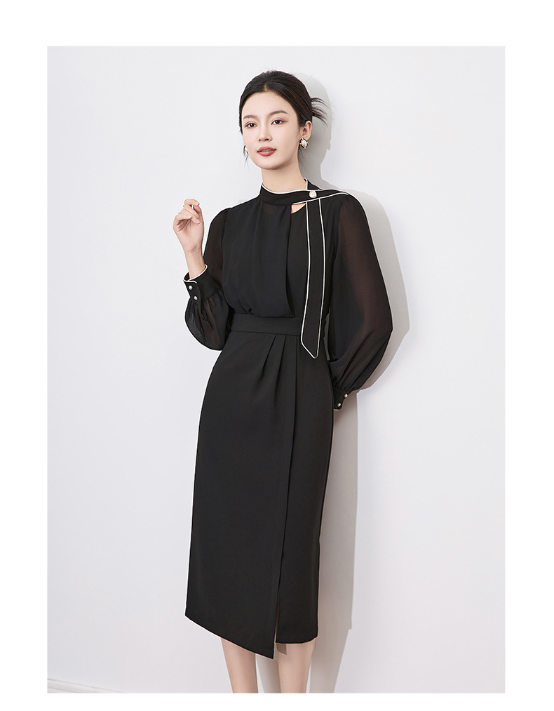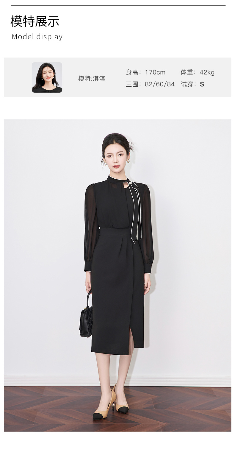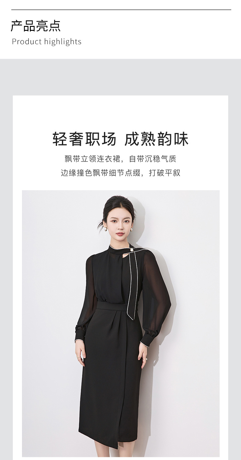 【高货wl】全新升级【铂金会员330/天猫449/差价119】(82157) 洛诗琳春季轻熟高级感女神范收腰别致飘带圆领包臀连衣裙