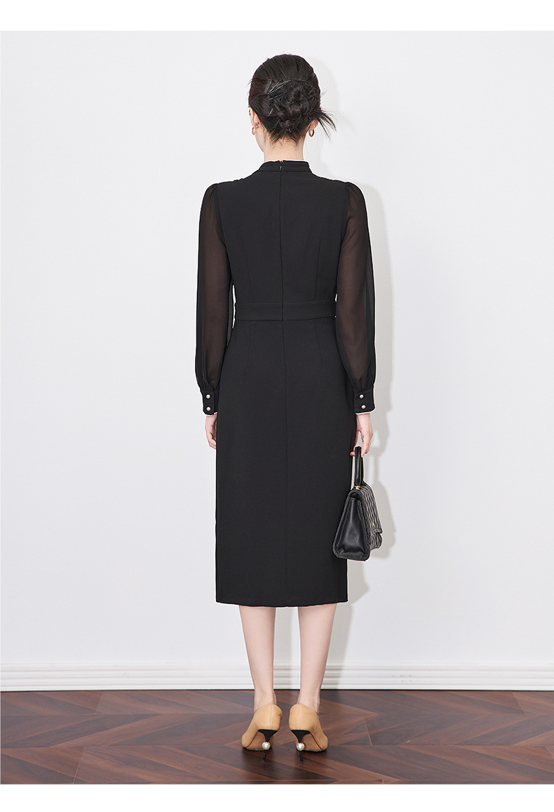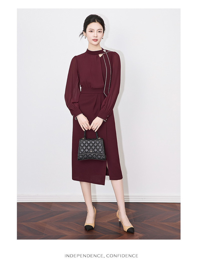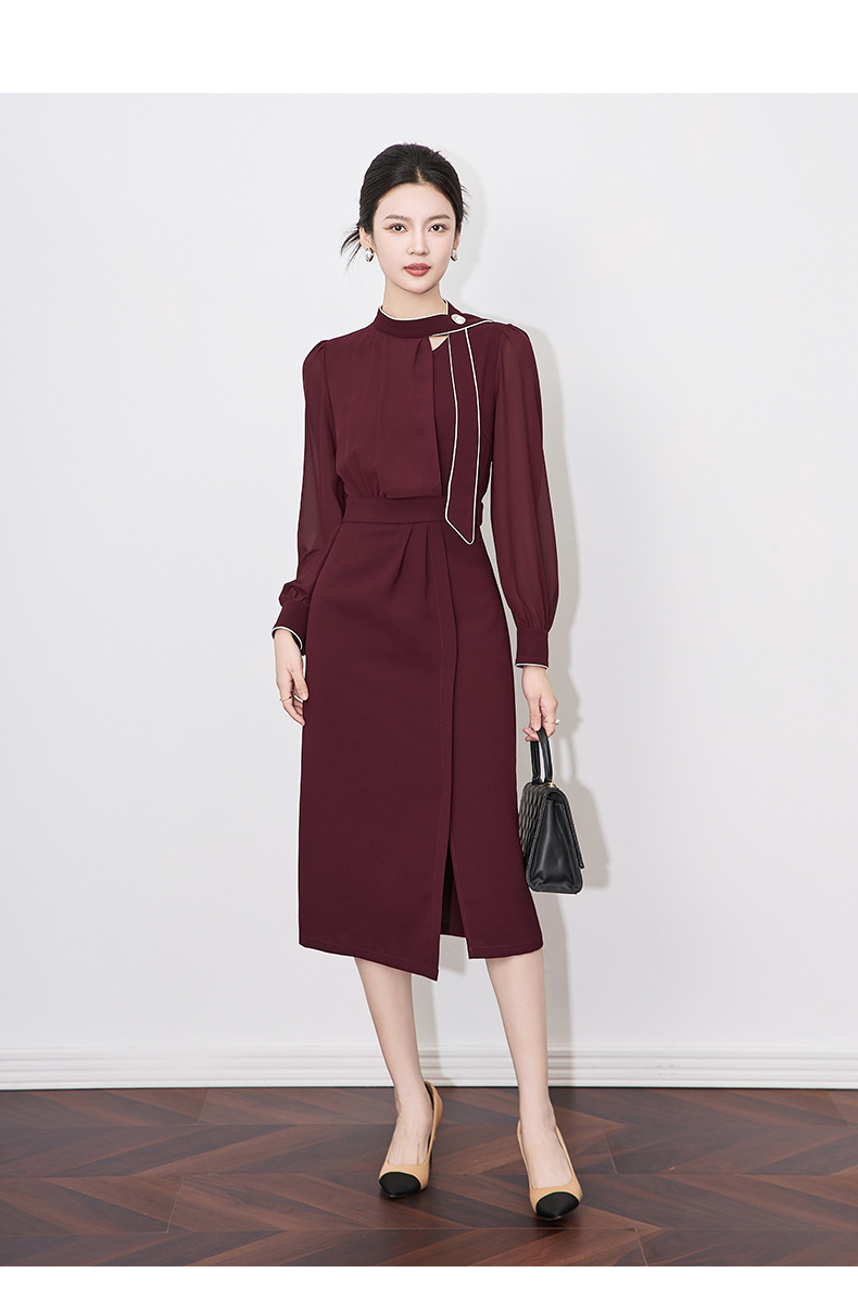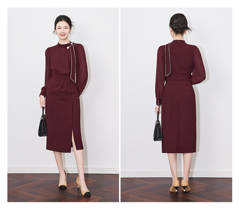 【高货wl】全新升级【铂金会员330/天猫449/差价119】(82157) 洛诗琳春季轻熟高级感女神范收腰别致飘带圆领包臀连衣裙