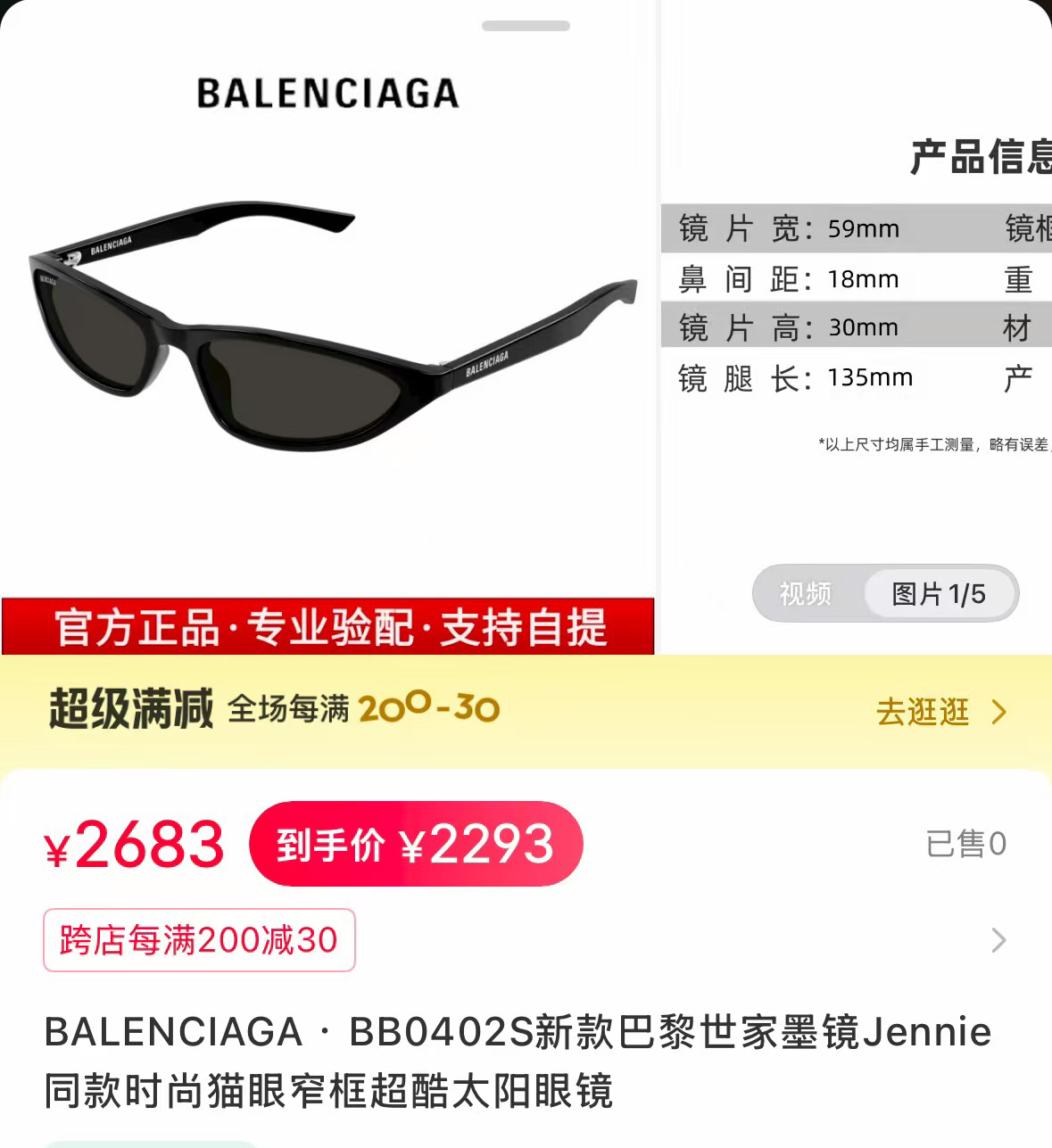 Balenciaga 巴黎世家 🕶️2026 春夏系列时装秀原单巴黎世家BB0402S板材猫眼太阳镜女款,Jennie 同款