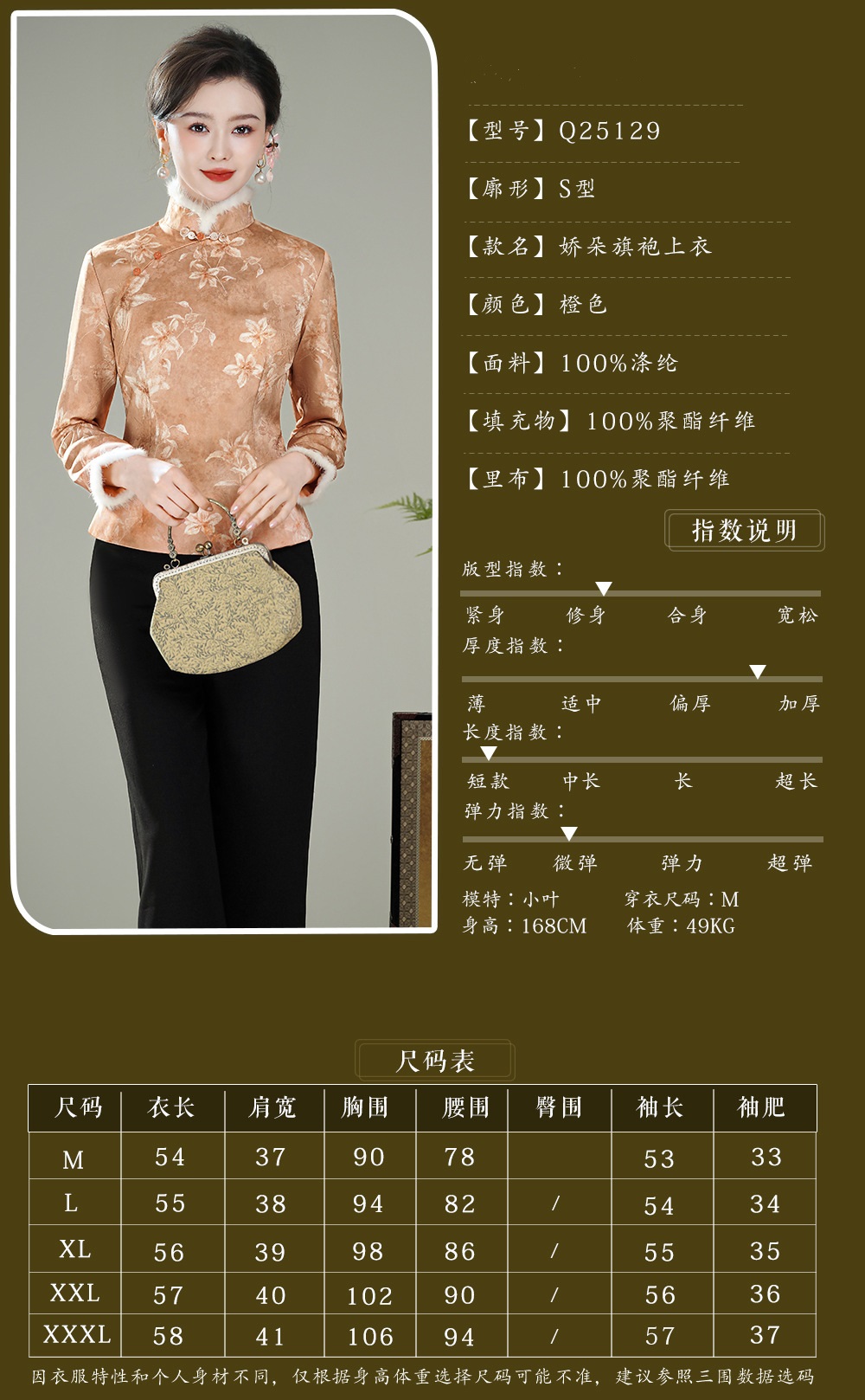 【娇朵】水貂毛领新中式,夹棉加厚保暖唐装旗袍上衣XGT-T25129