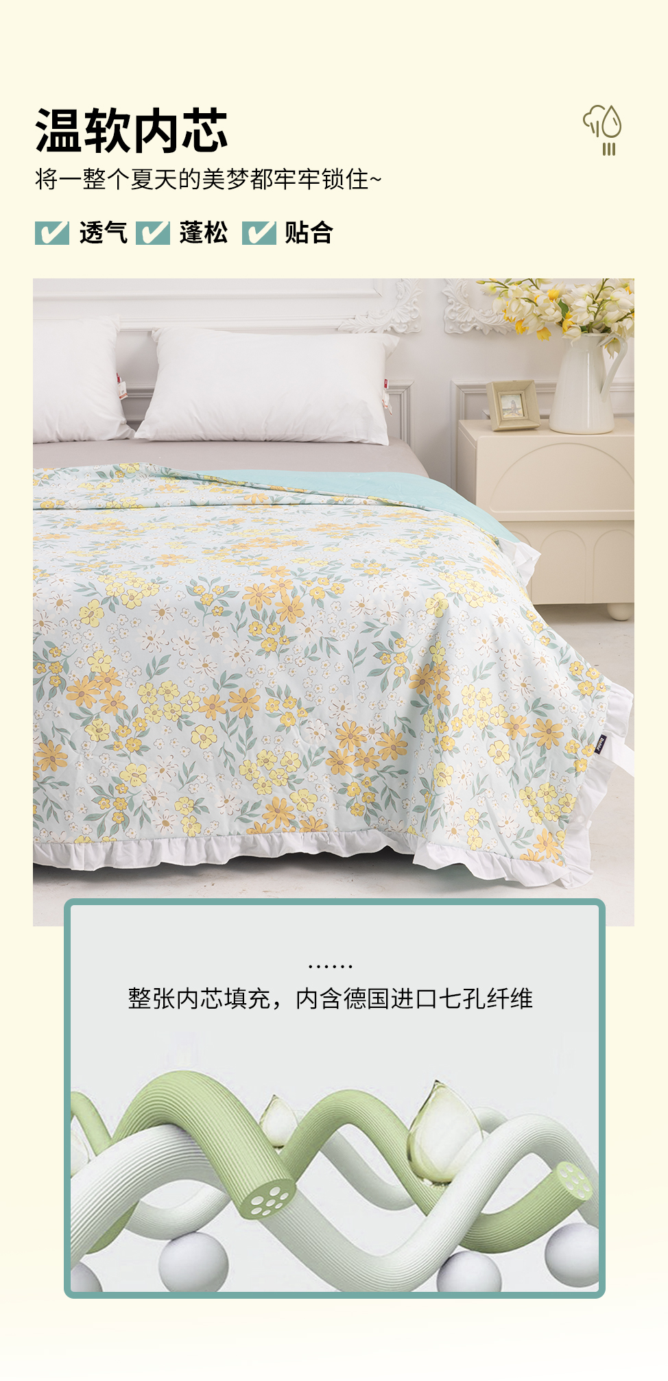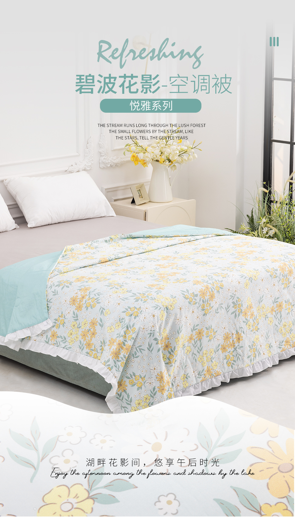 多喜爱 悦雅夏薄被/空调被(碧波花影)【浪漫花边】【全棉面料】【进口七孔纤维】斜纹织造 可机洗水洗 榈棉/印花