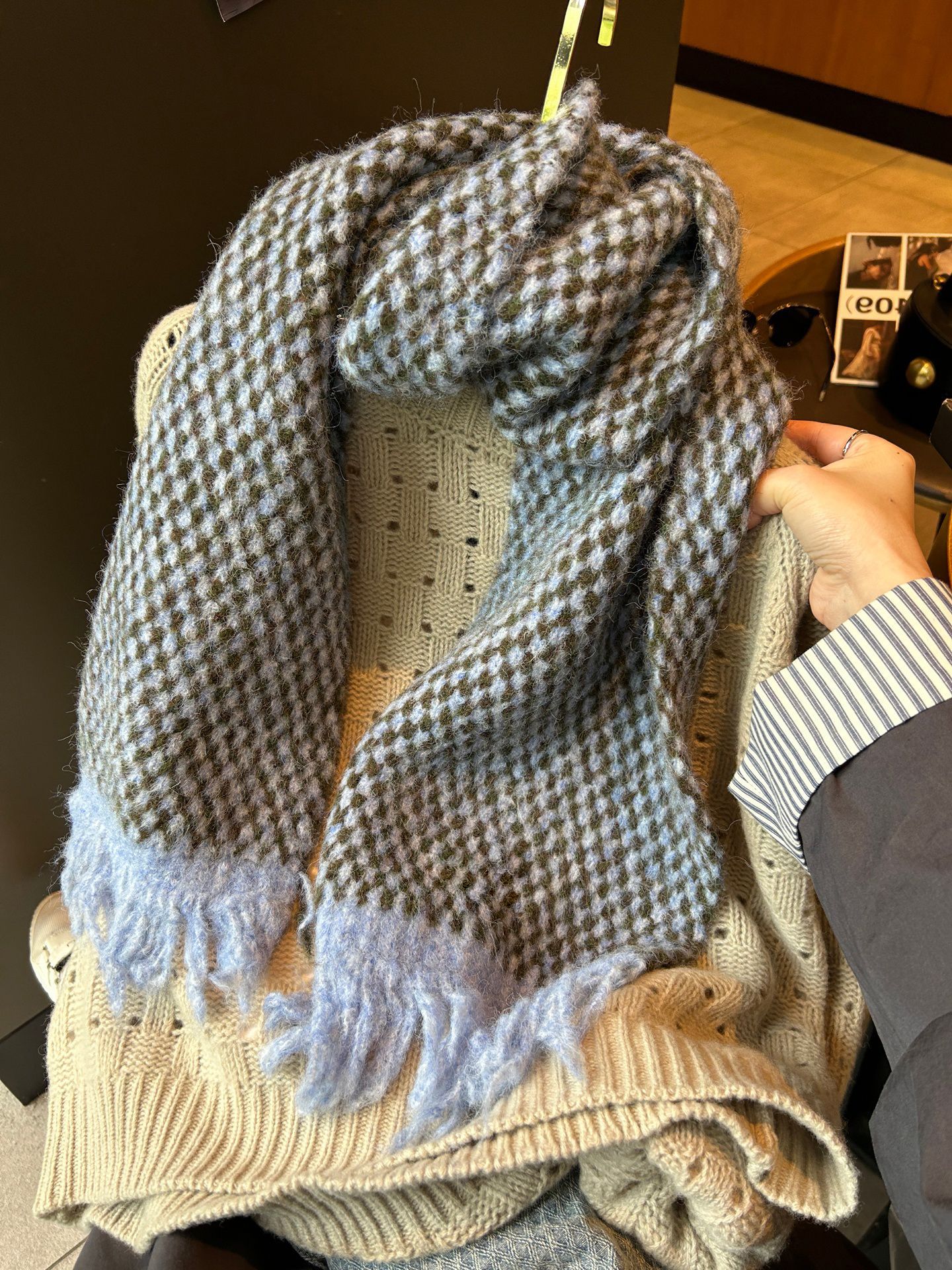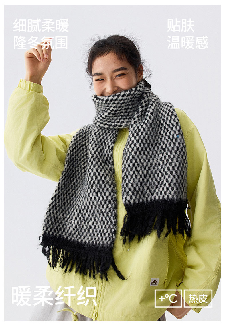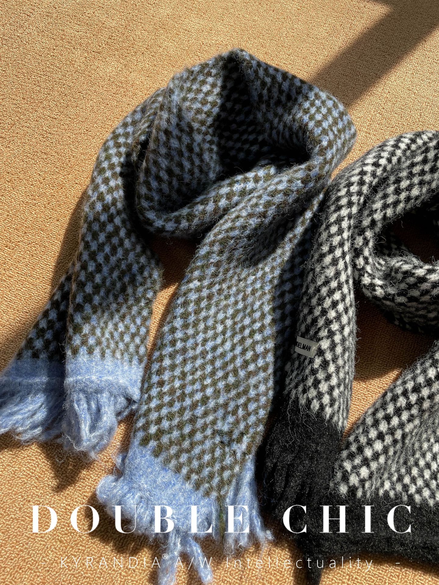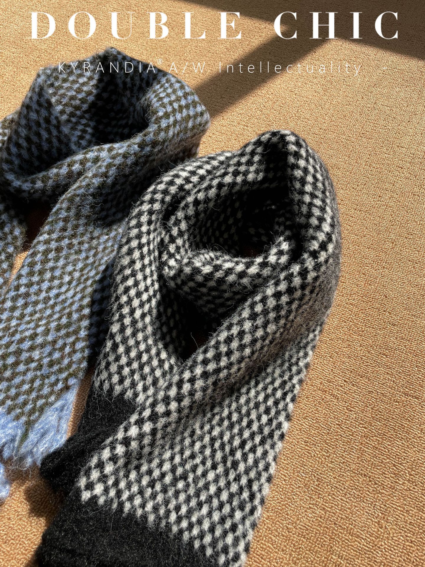 WS F1515『菱格围巾』复古英伦风千鸟格围巾含羊毛保暖针织男女同款
