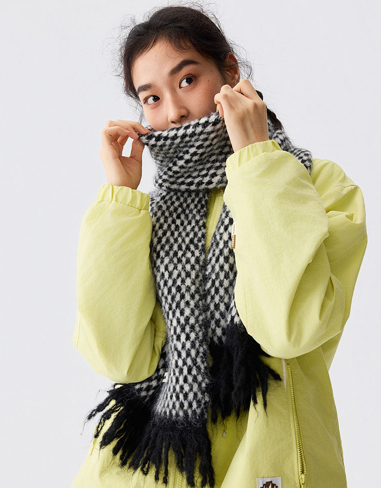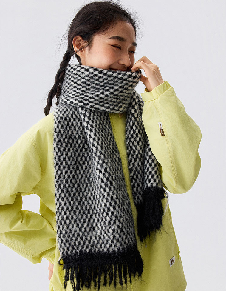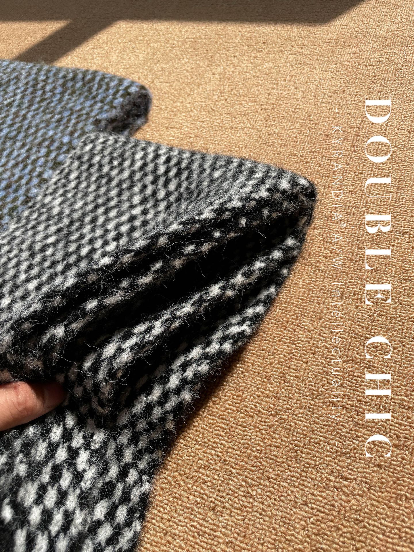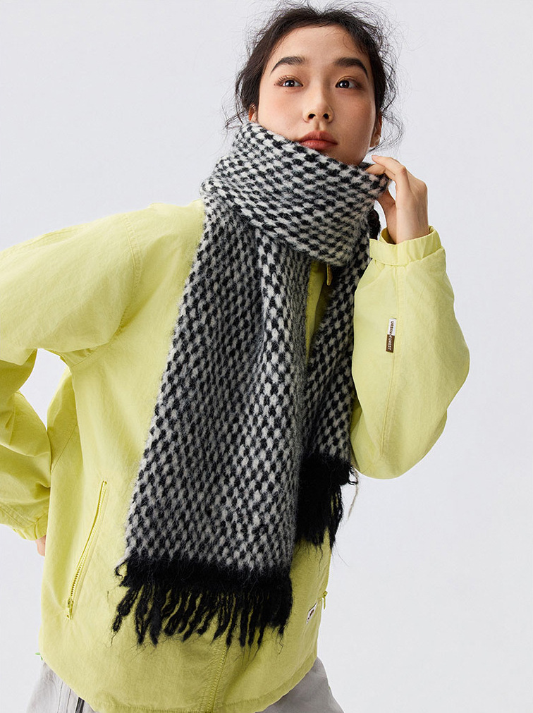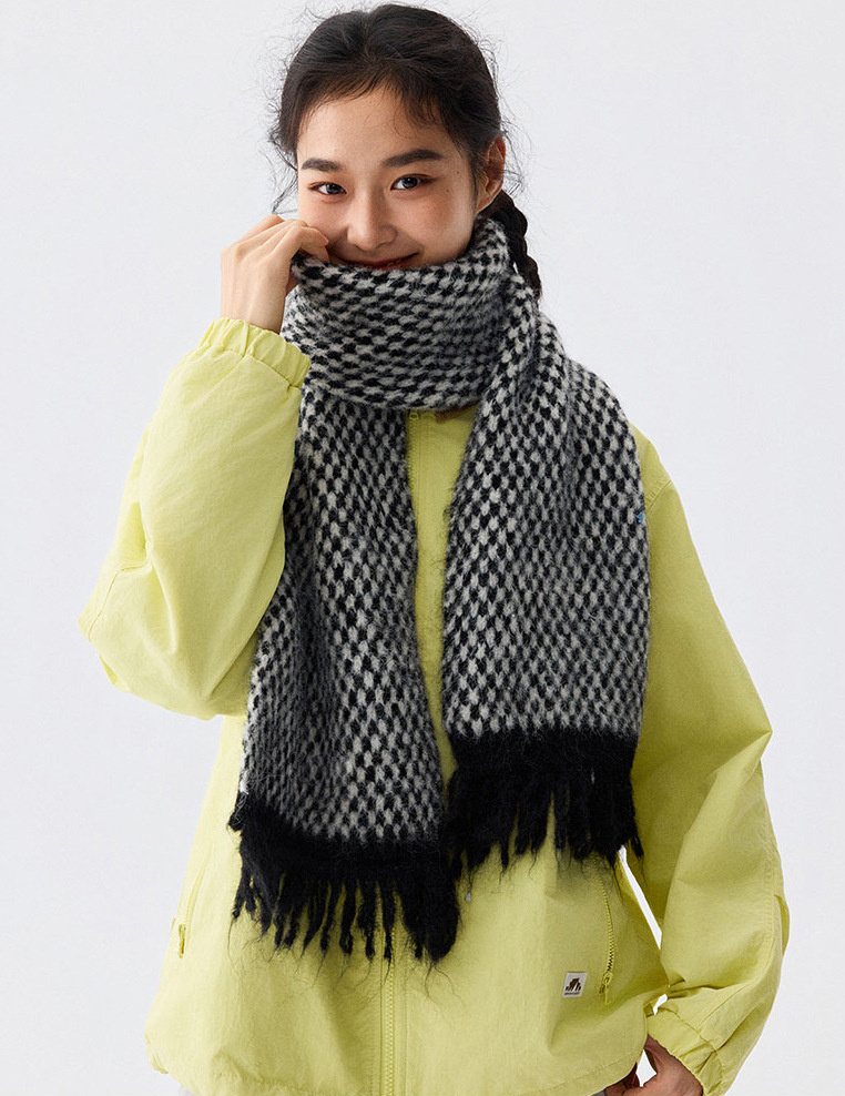 WS F1515『菱格围巾』复古英伦风千鸟格围巾含羊毛保暖针织男女同款