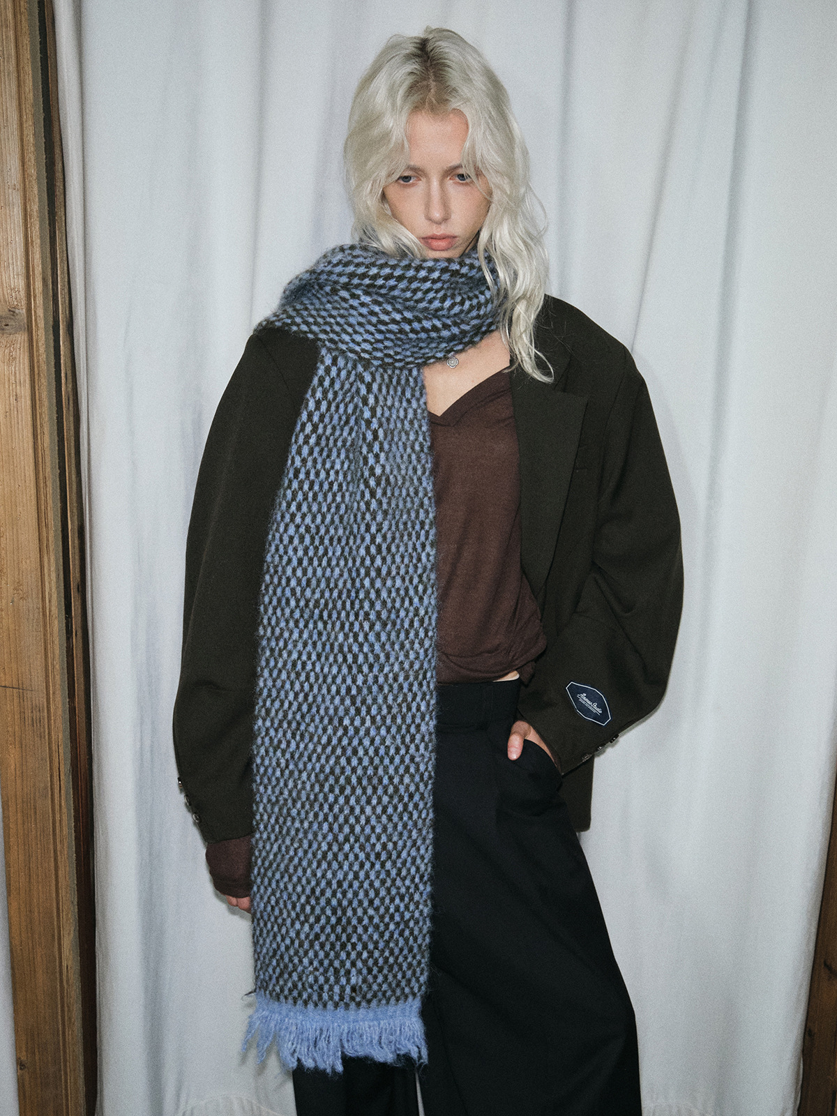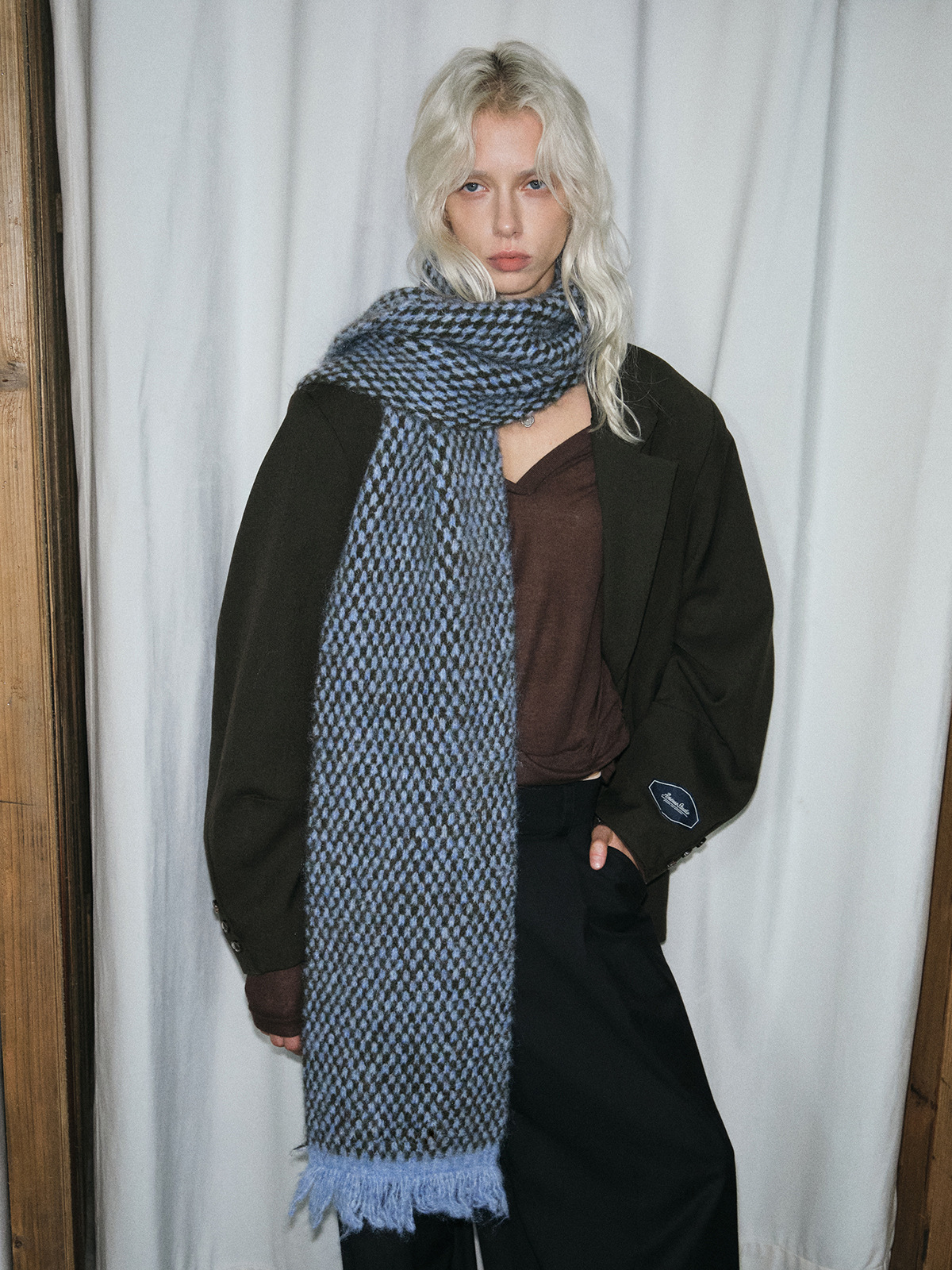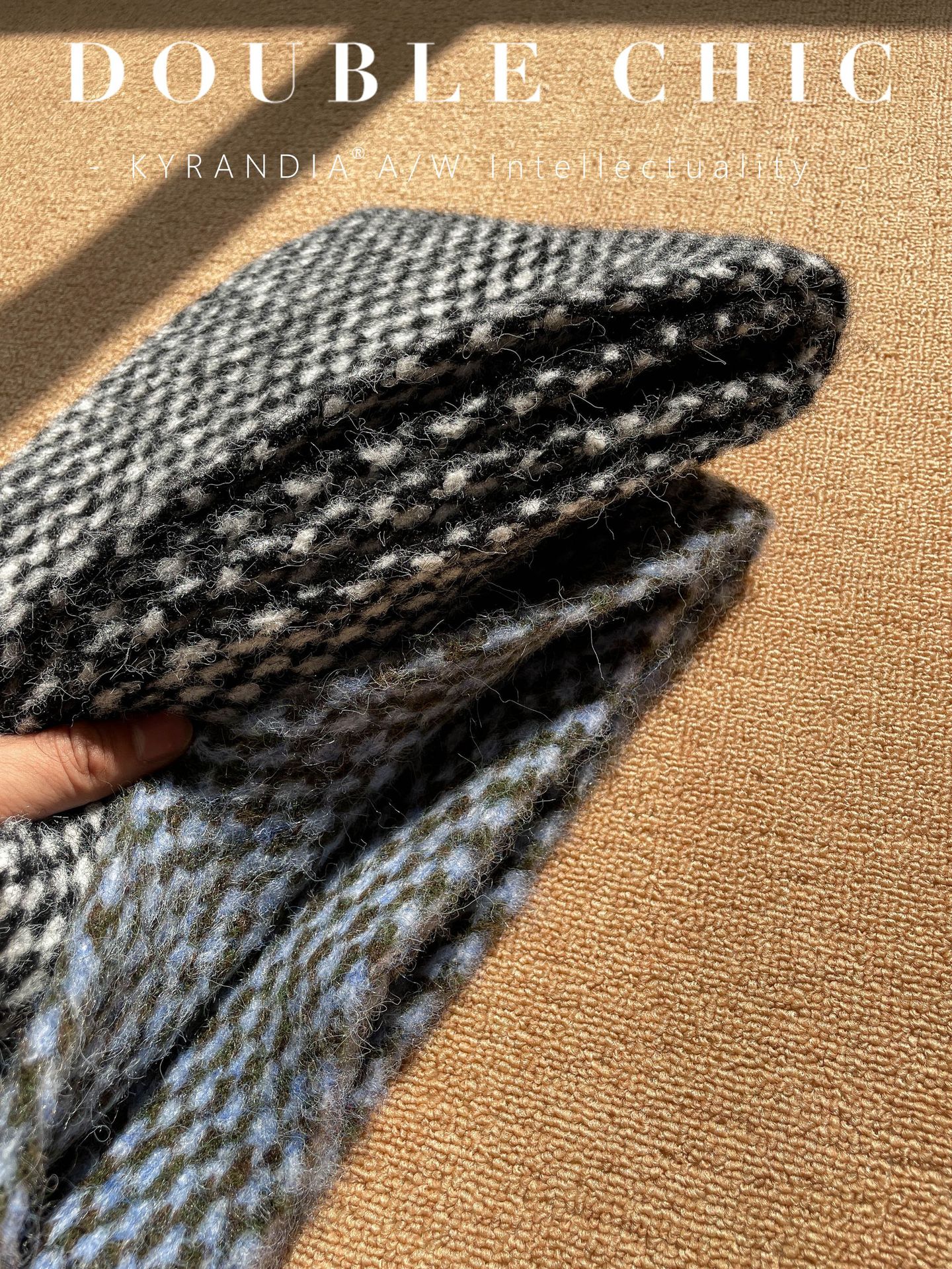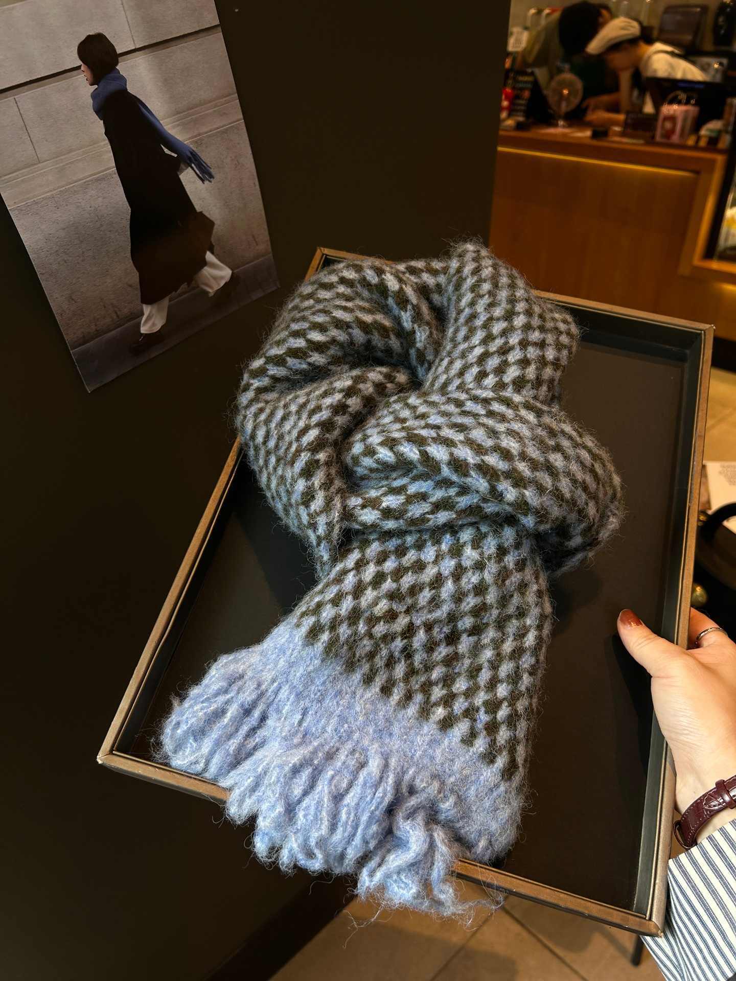 WS F1515『菱格围巾』复古英伦风千鸟格围巾含羊毛保暖针织男女同款
