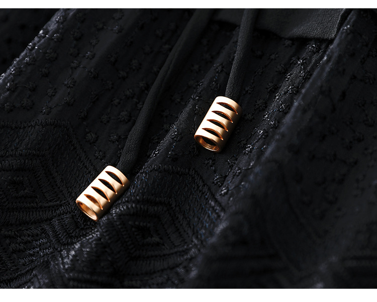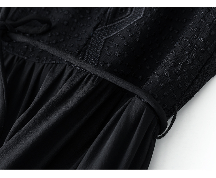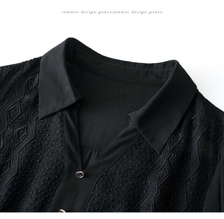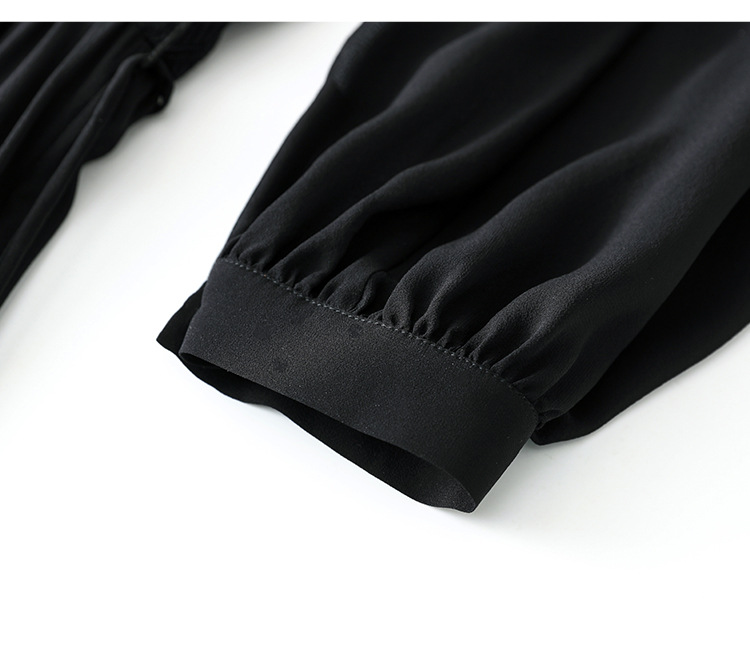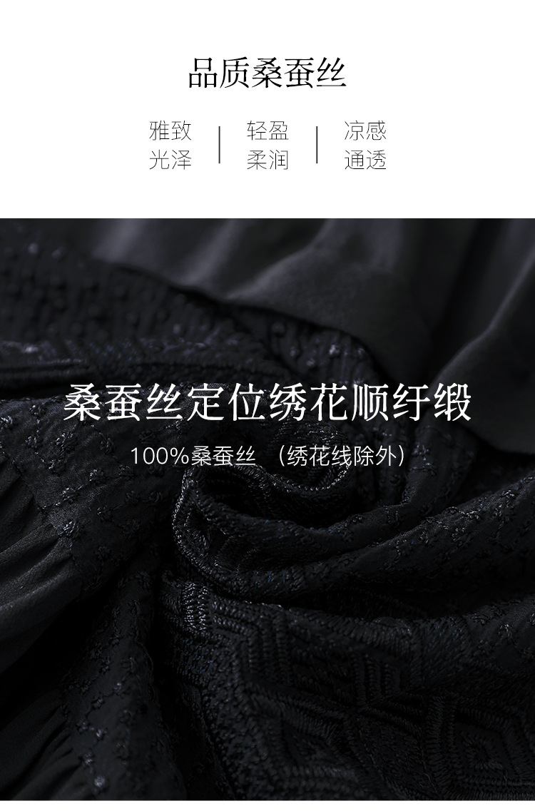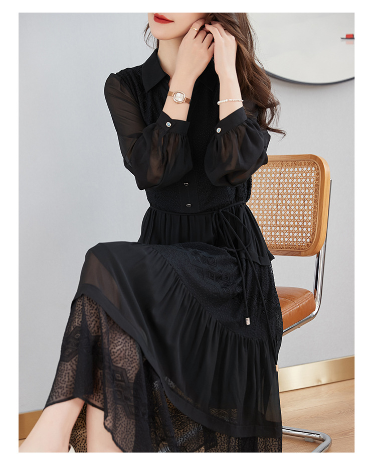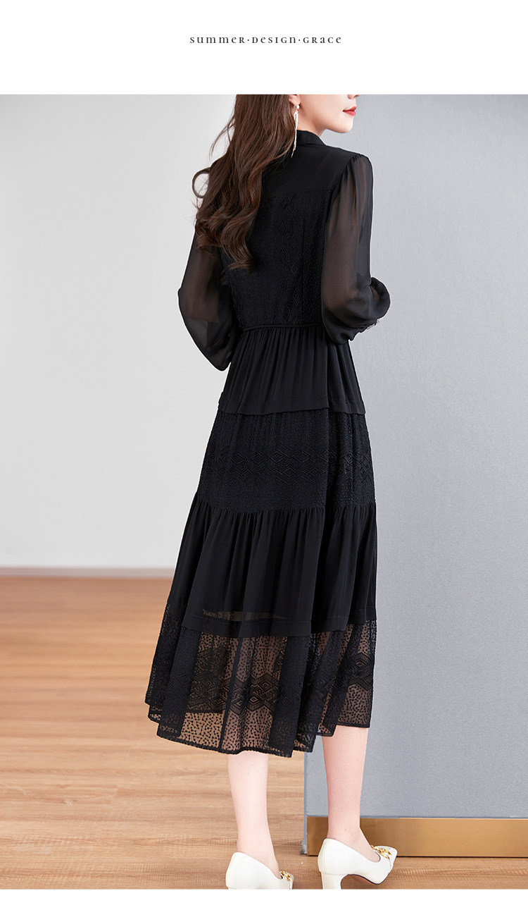 QS-82399677真丝桑蚕丝连衣裙女新款夏装气质衬衫式Polo领长袖小黑裙