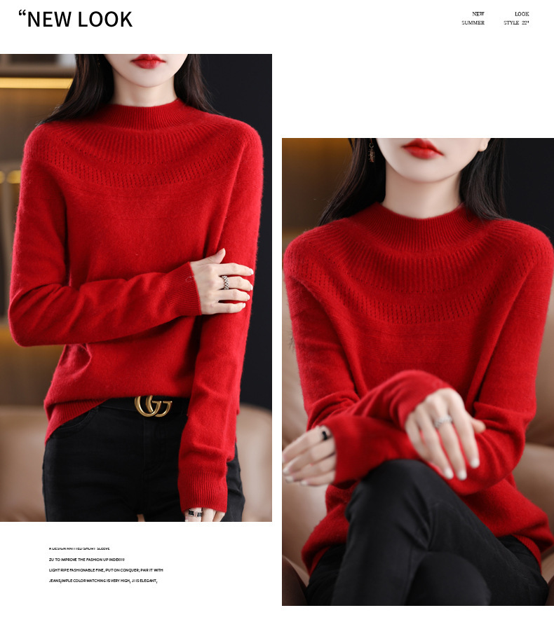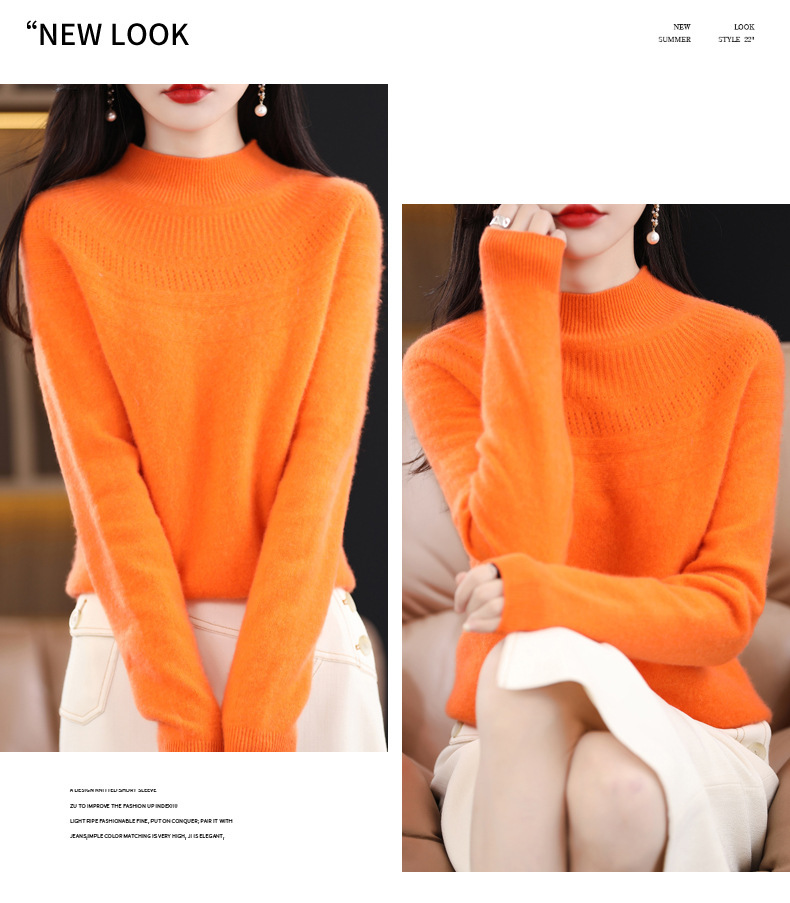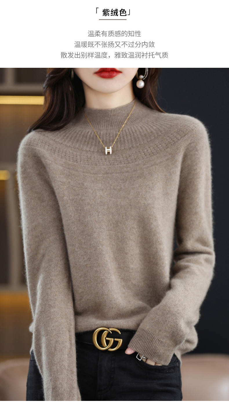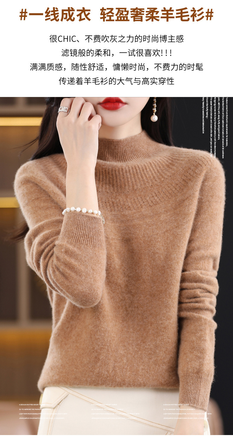 QH-NJR1106秋冬新款羊毛衫女一线成衣半高领宽松显瘦针织打底衫上衣内搭洋气