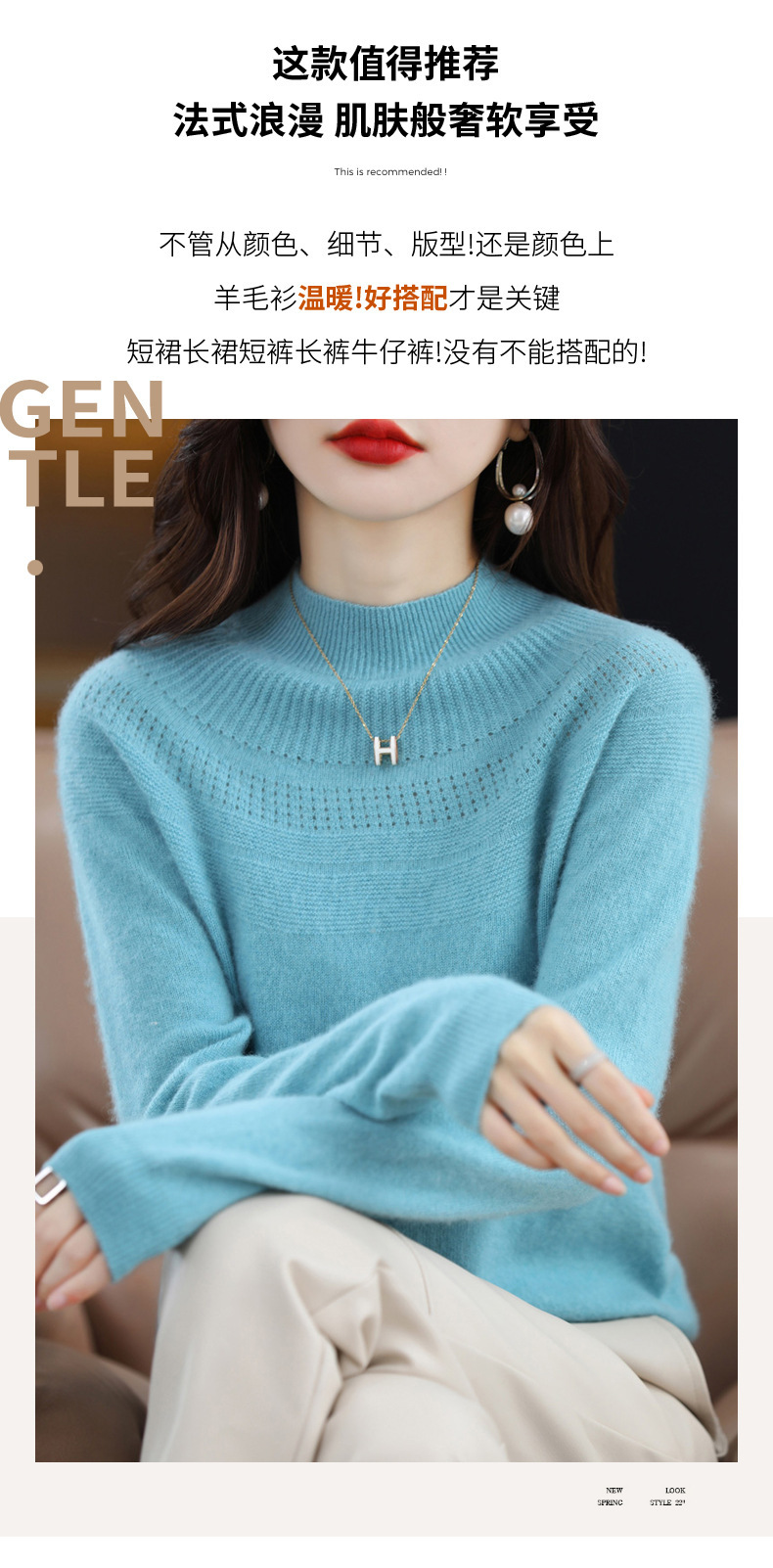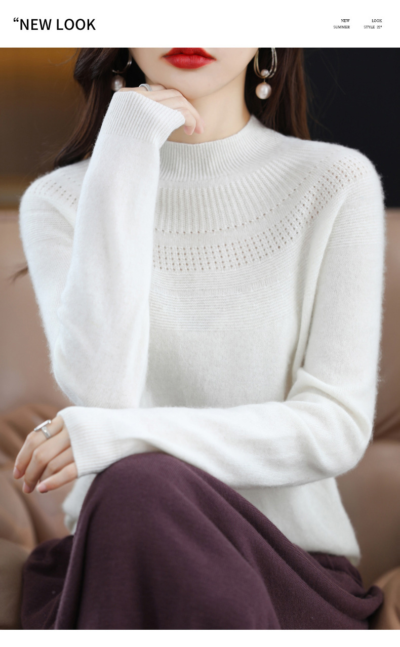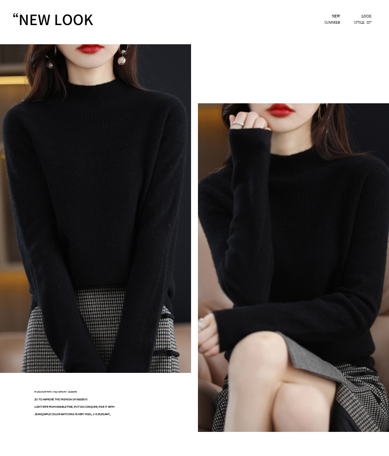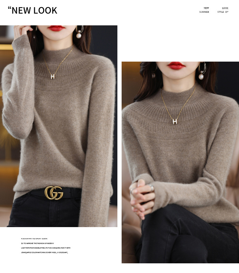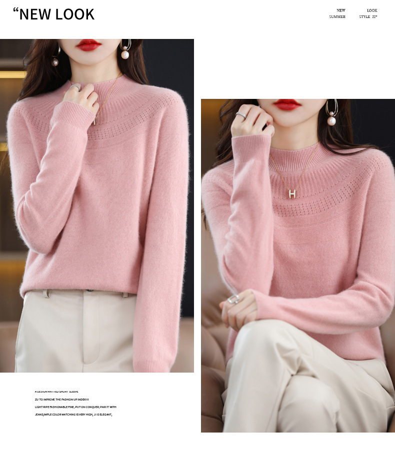 QH-NJR1106秋冬新款羊毛衫女一线成衣半高领宽松显瘦针织打底衫上衣内搭洋气
