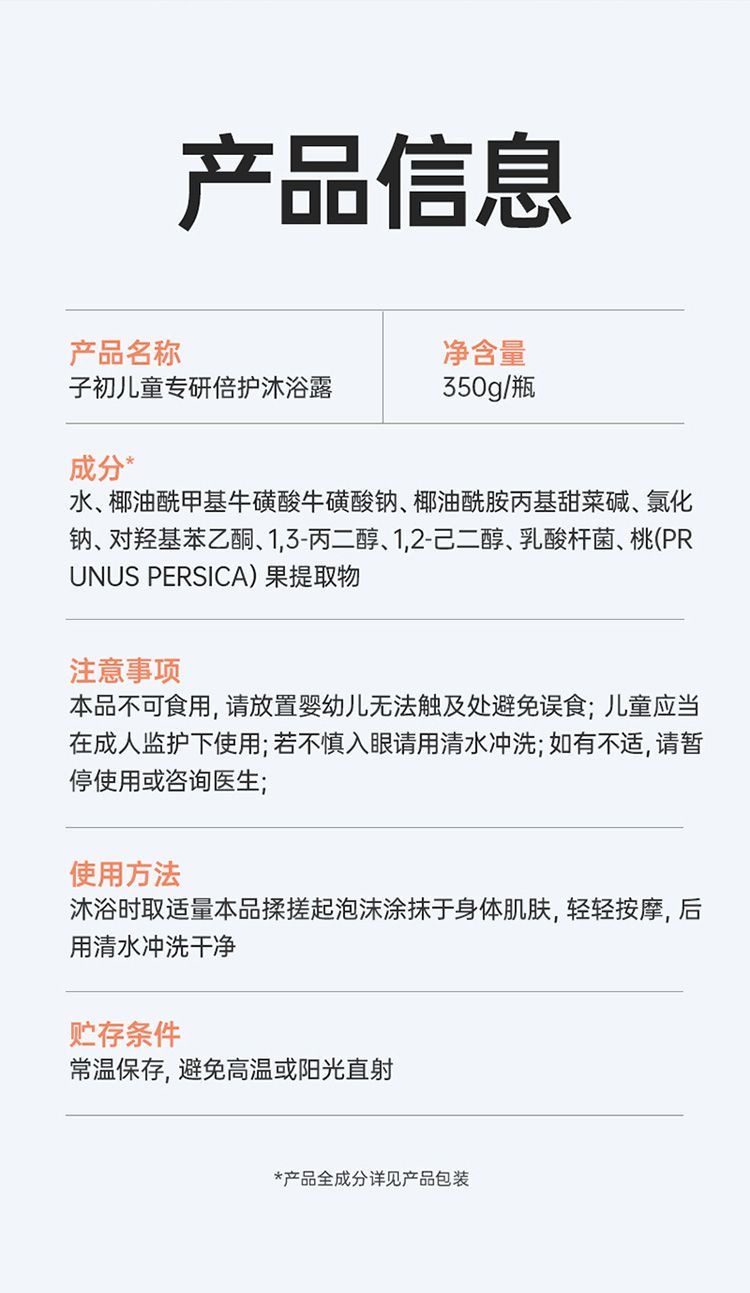 【孕味秒杀专属】子初儿童专研倍护洗发露 350g/子初儿童专研倍护沐浴露 350g