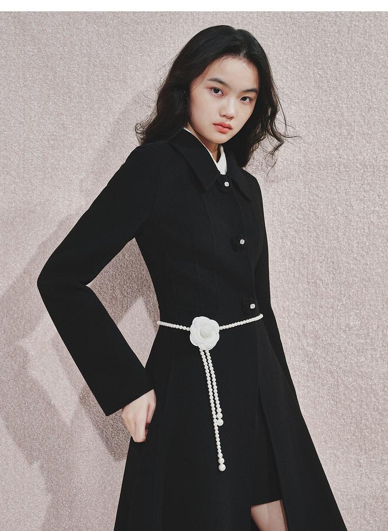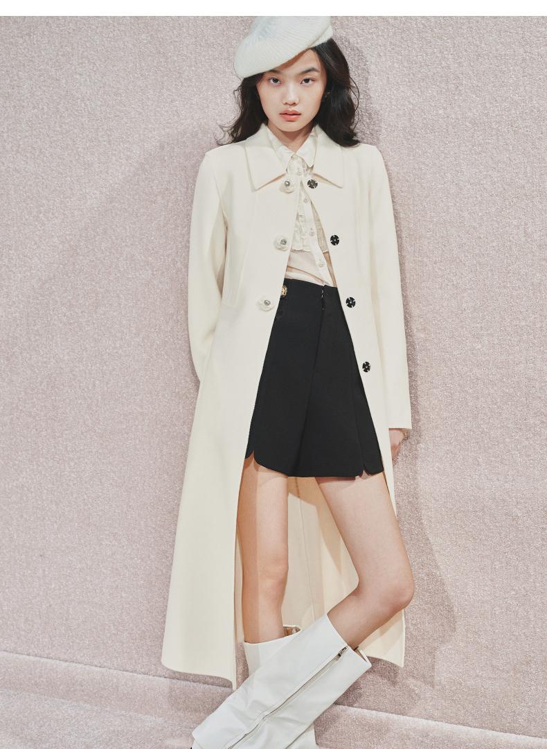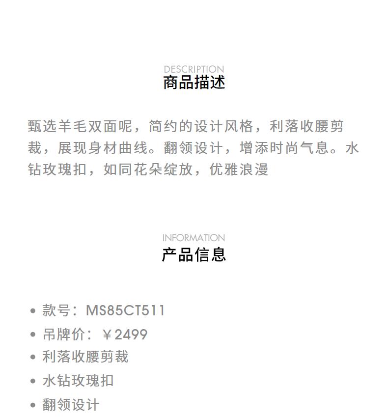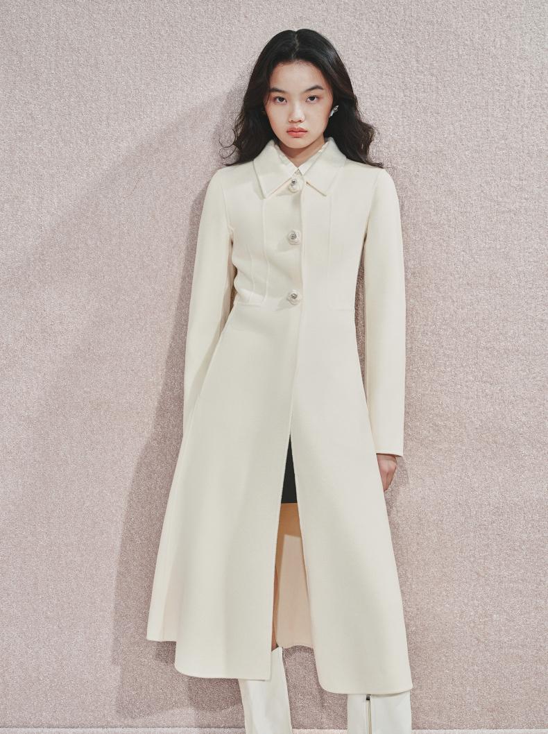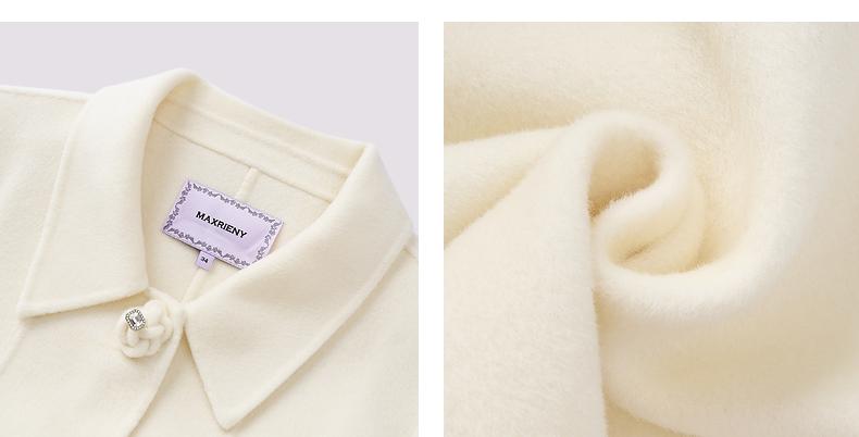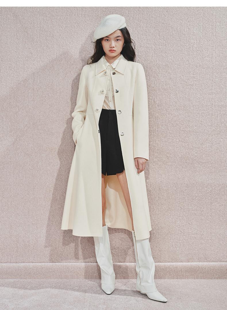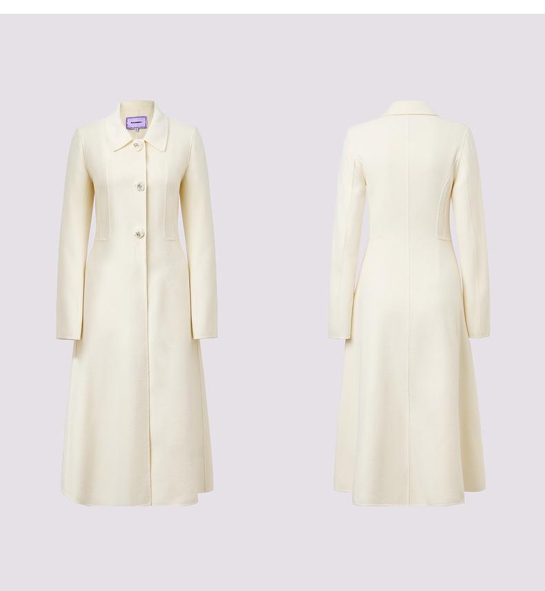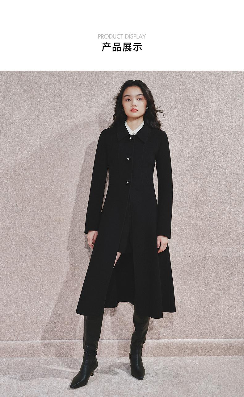 MAXRIENY极简赫本风绵羊毛过膝长款大衣气质女24秋新款外套澳毛(货号:MS85CT511)