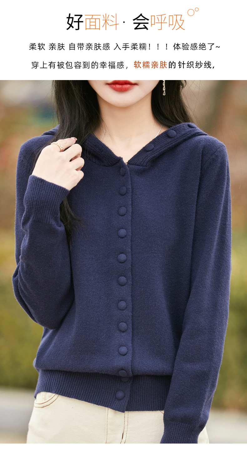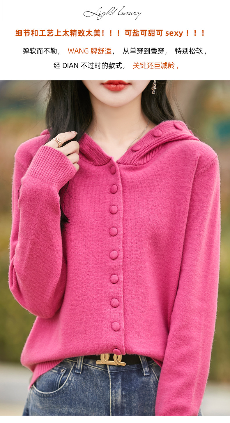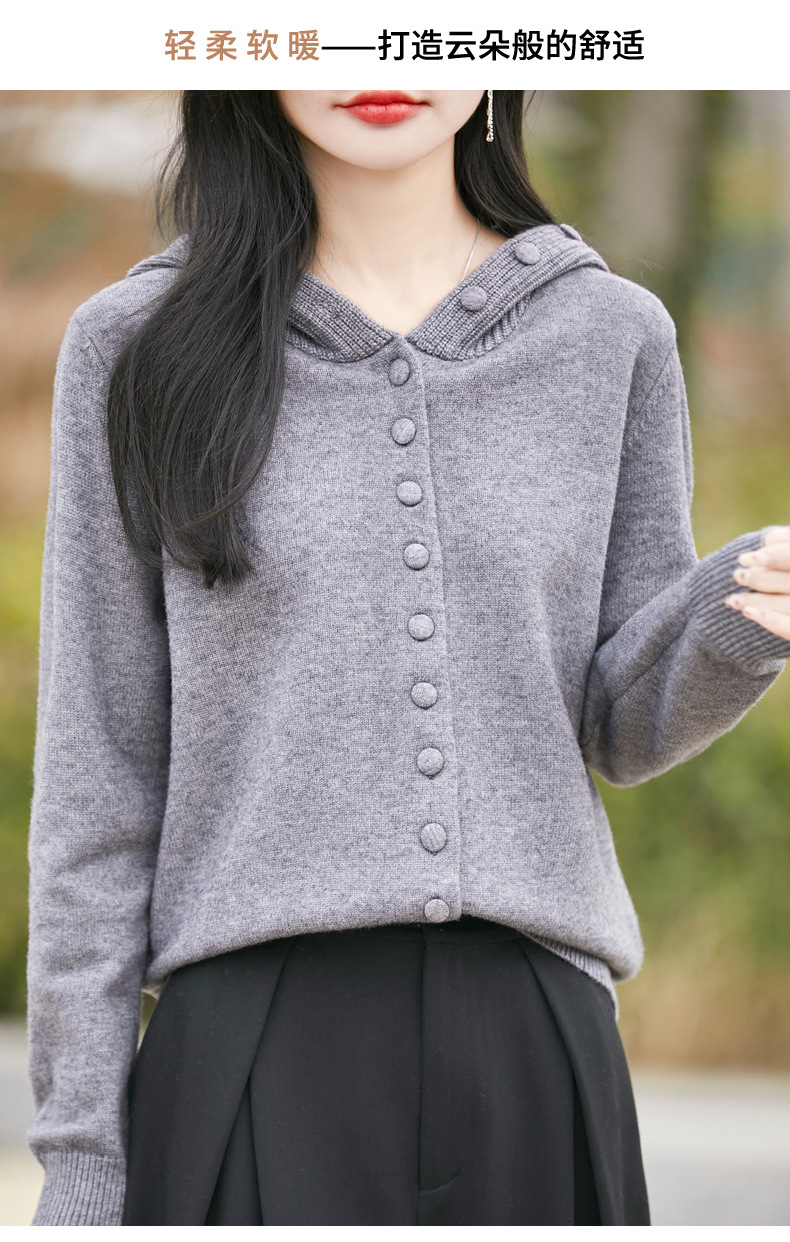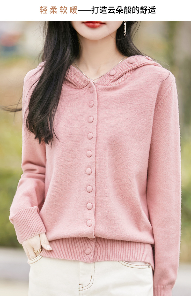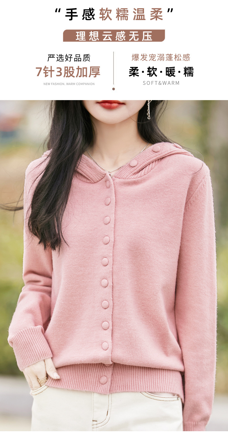 QHJY-JY8208亲肤绒单排扣毛衣外套女七针加厚休闲连帽针织开衫2025年新款上衣