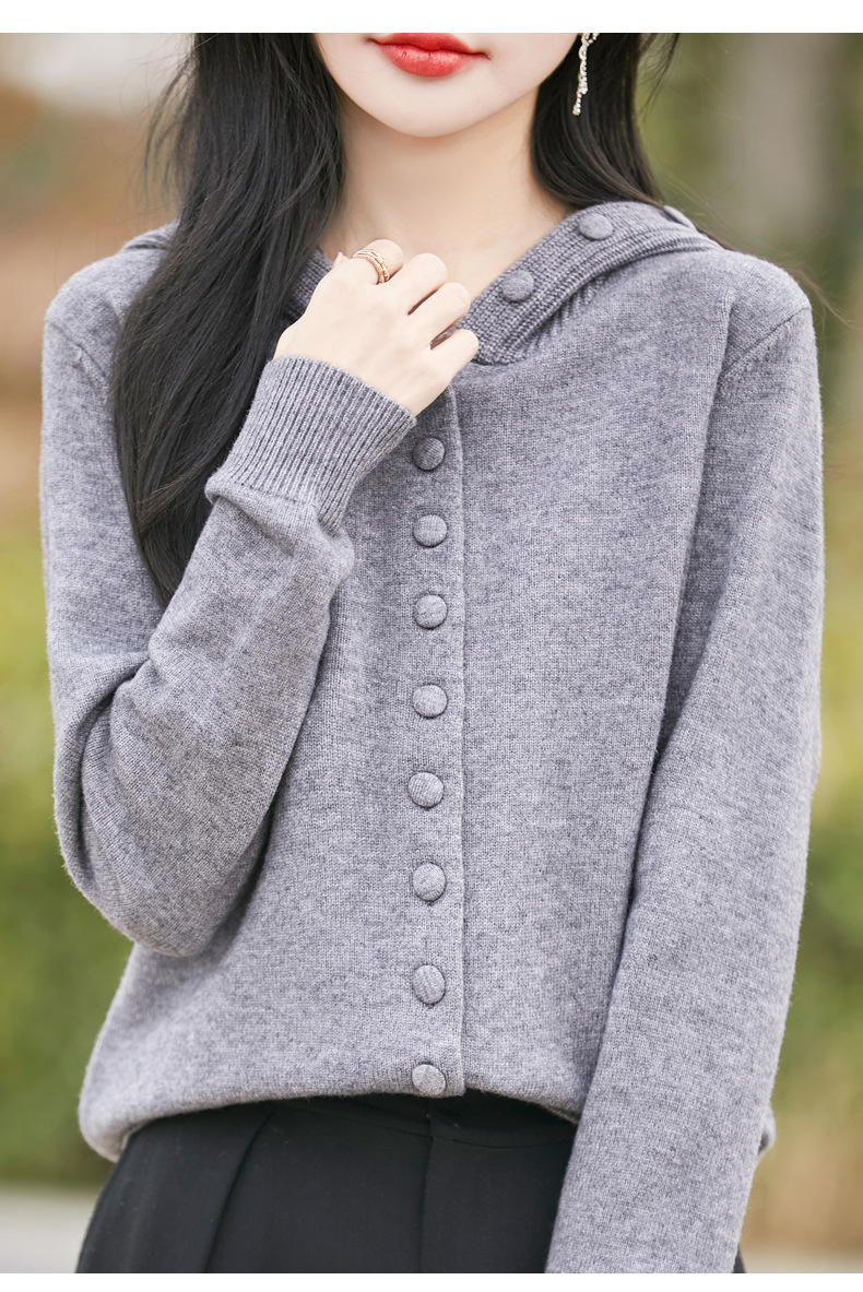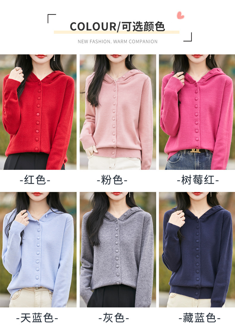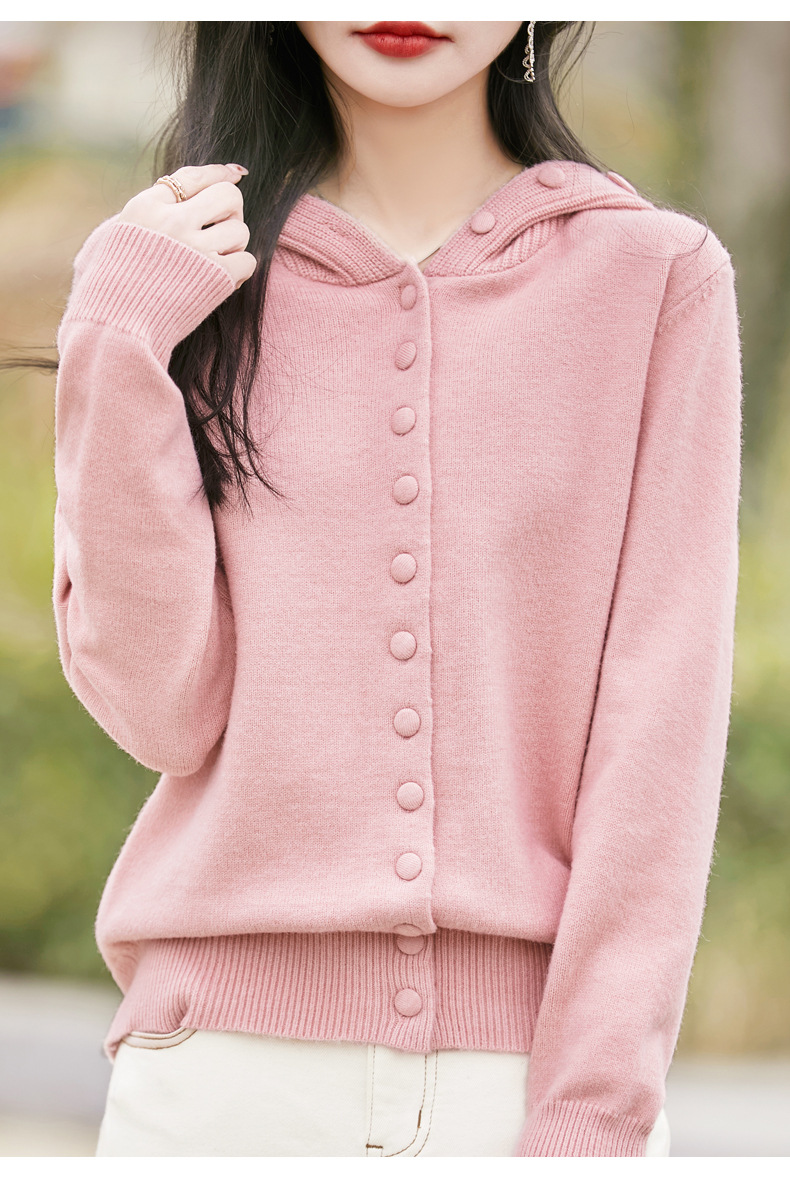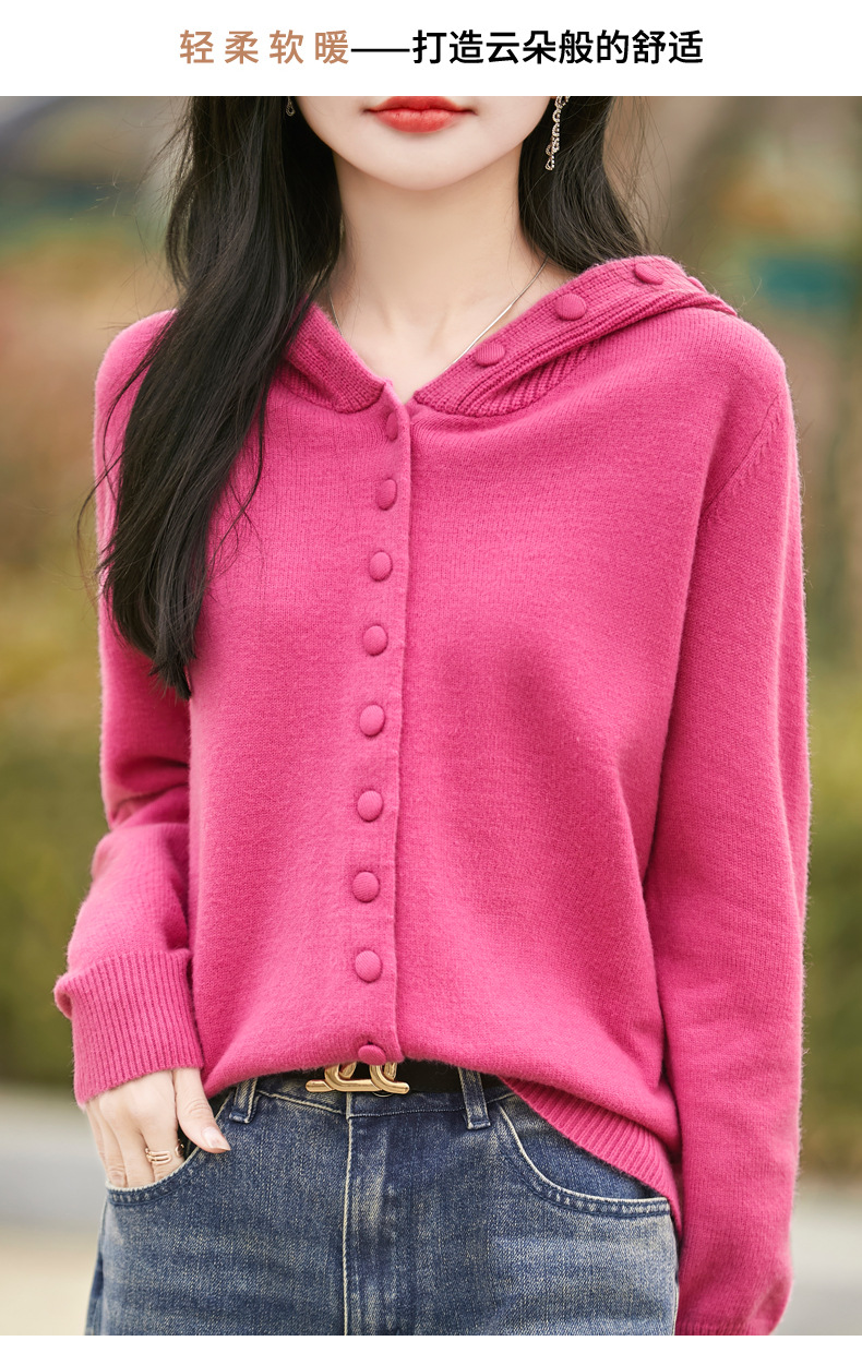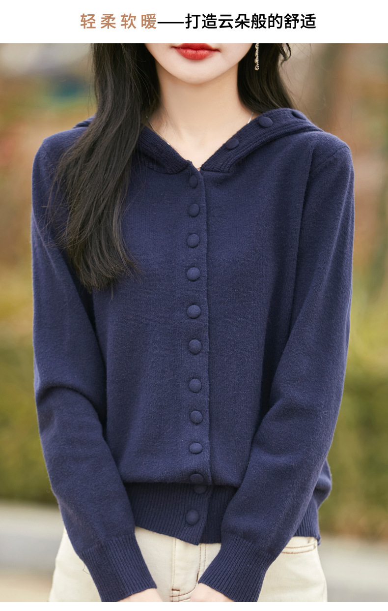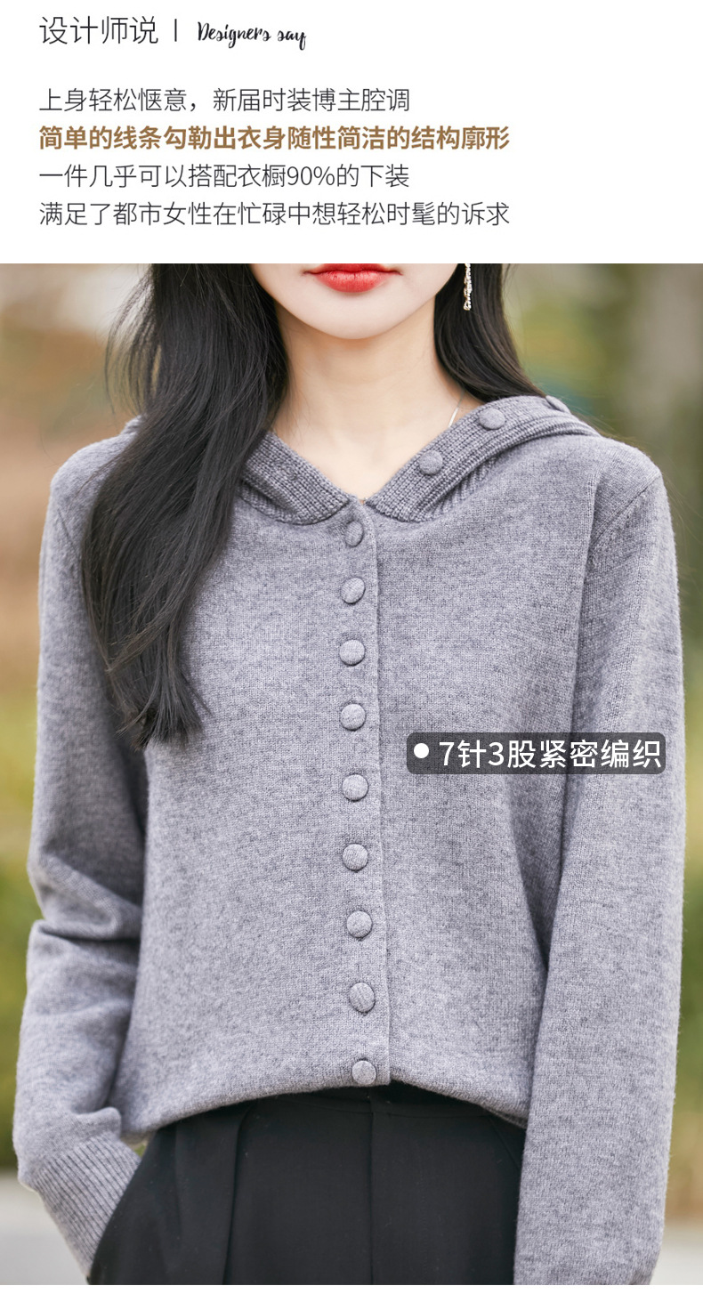 QHJY-JY8208亲肤绒单排扣毛衣外套女七针加厚休闲连帽针织开衫2025年新款上衣