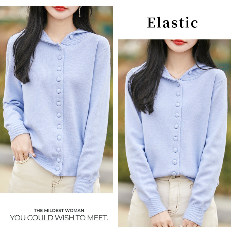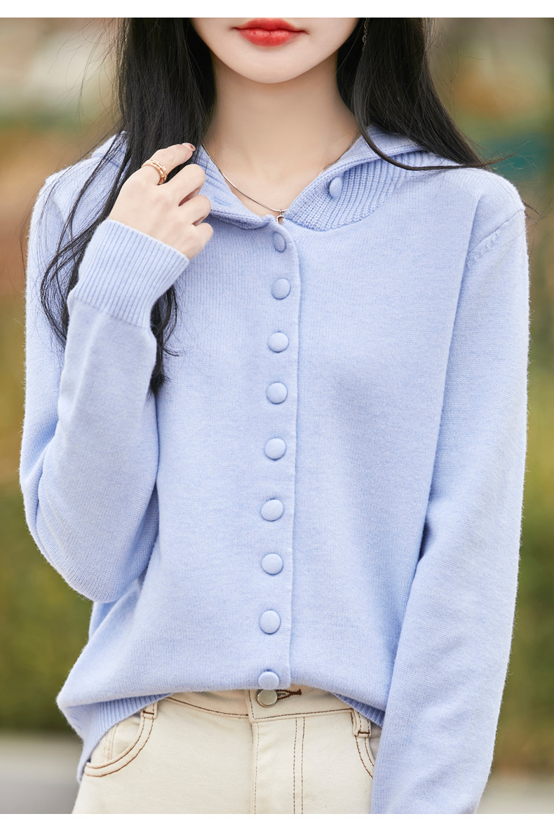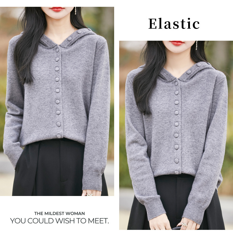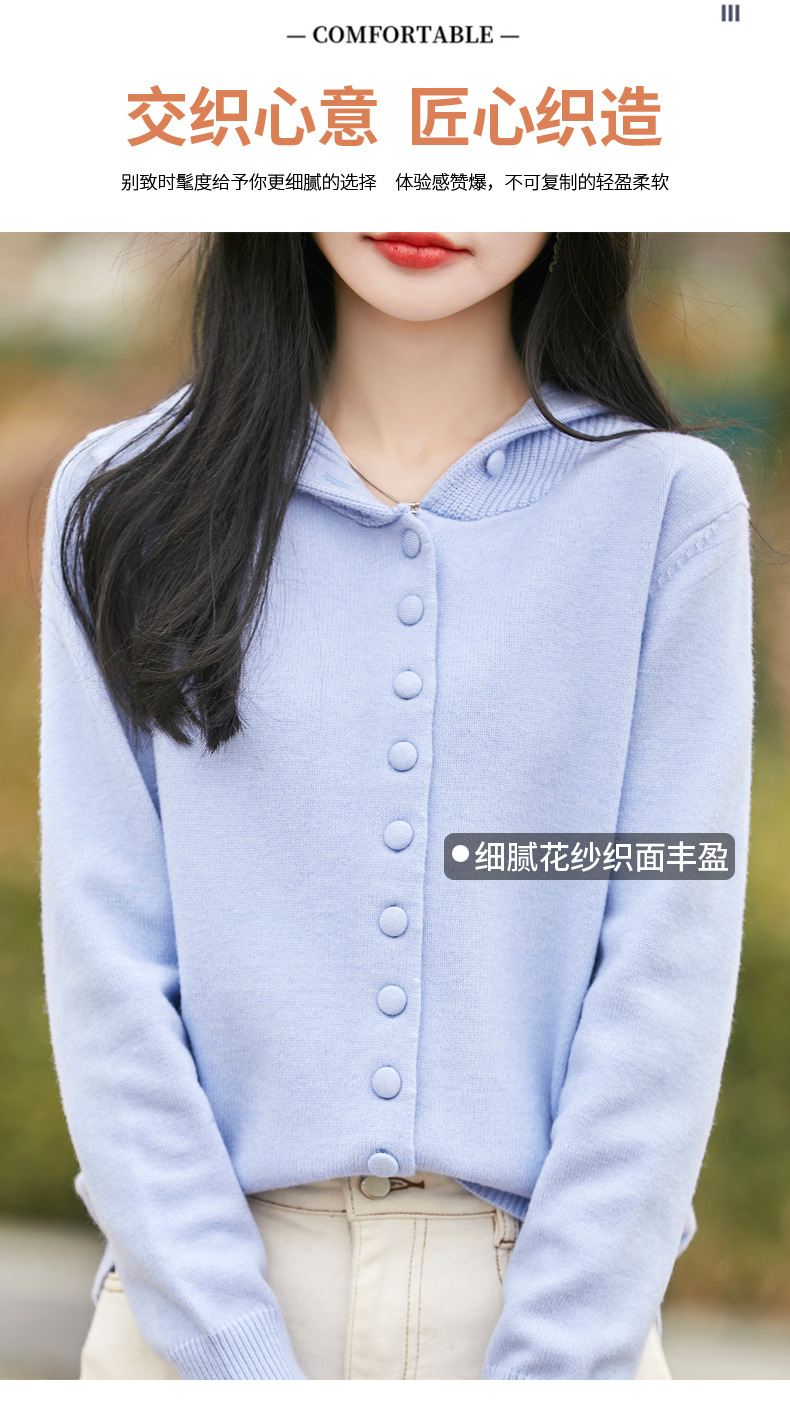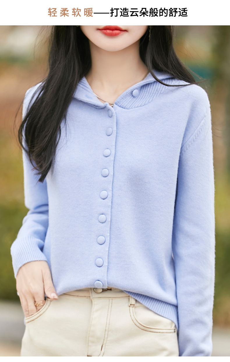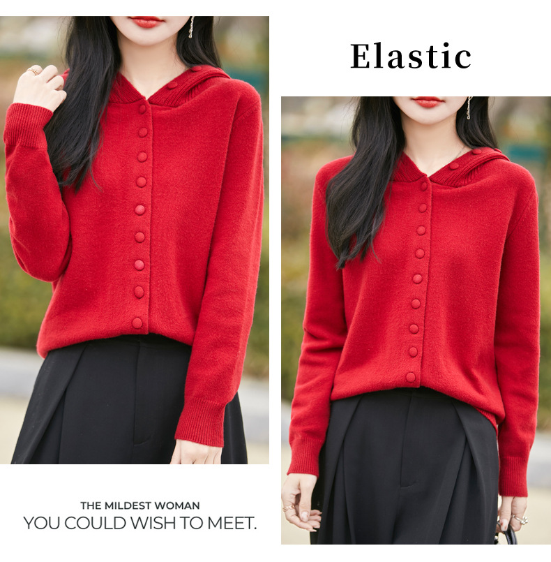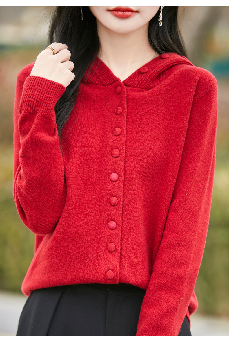 QHJY-JY8208亲肤绒单排扣毛衣外套女七针加厚休闲连帽针织开衫2025年新款上衣