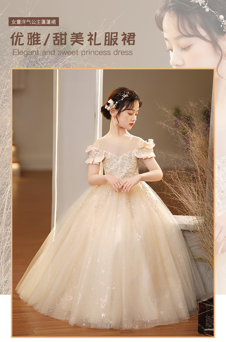 DY-1938儿童礼服夏季童装女孩长款婚纱裙生日走秀钢琴演出女童连衣裙