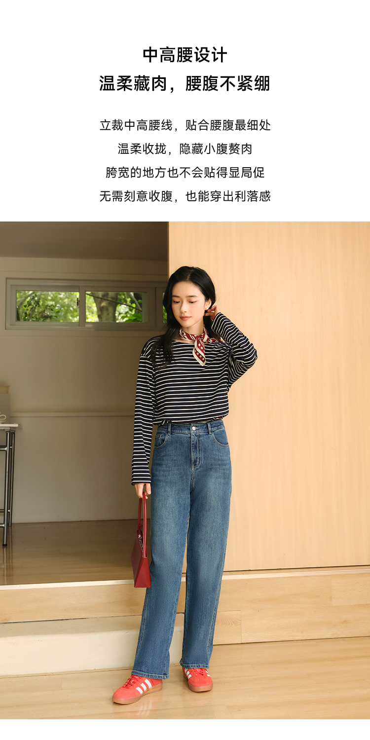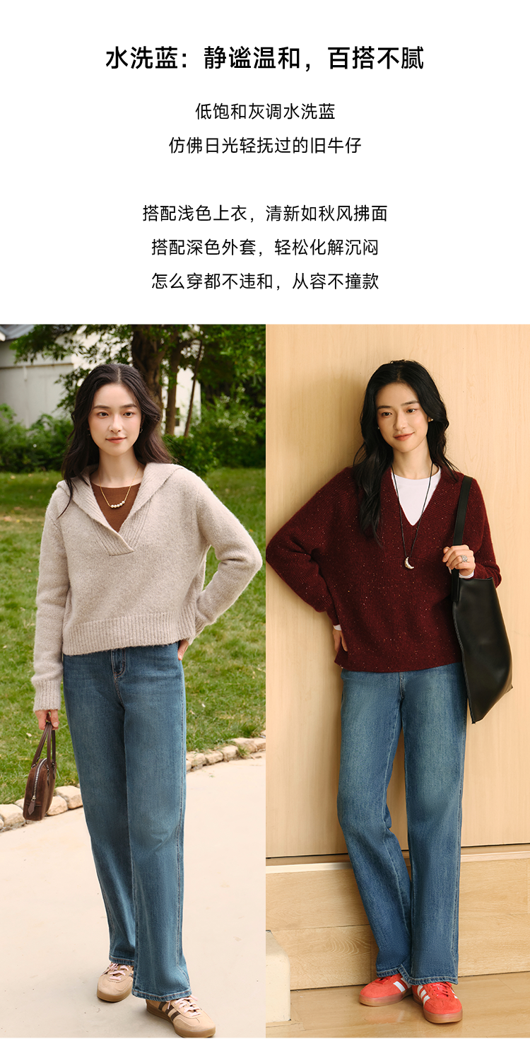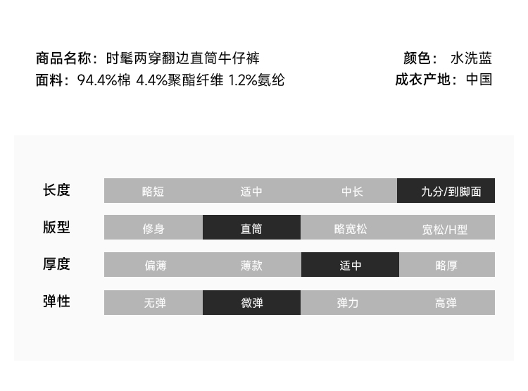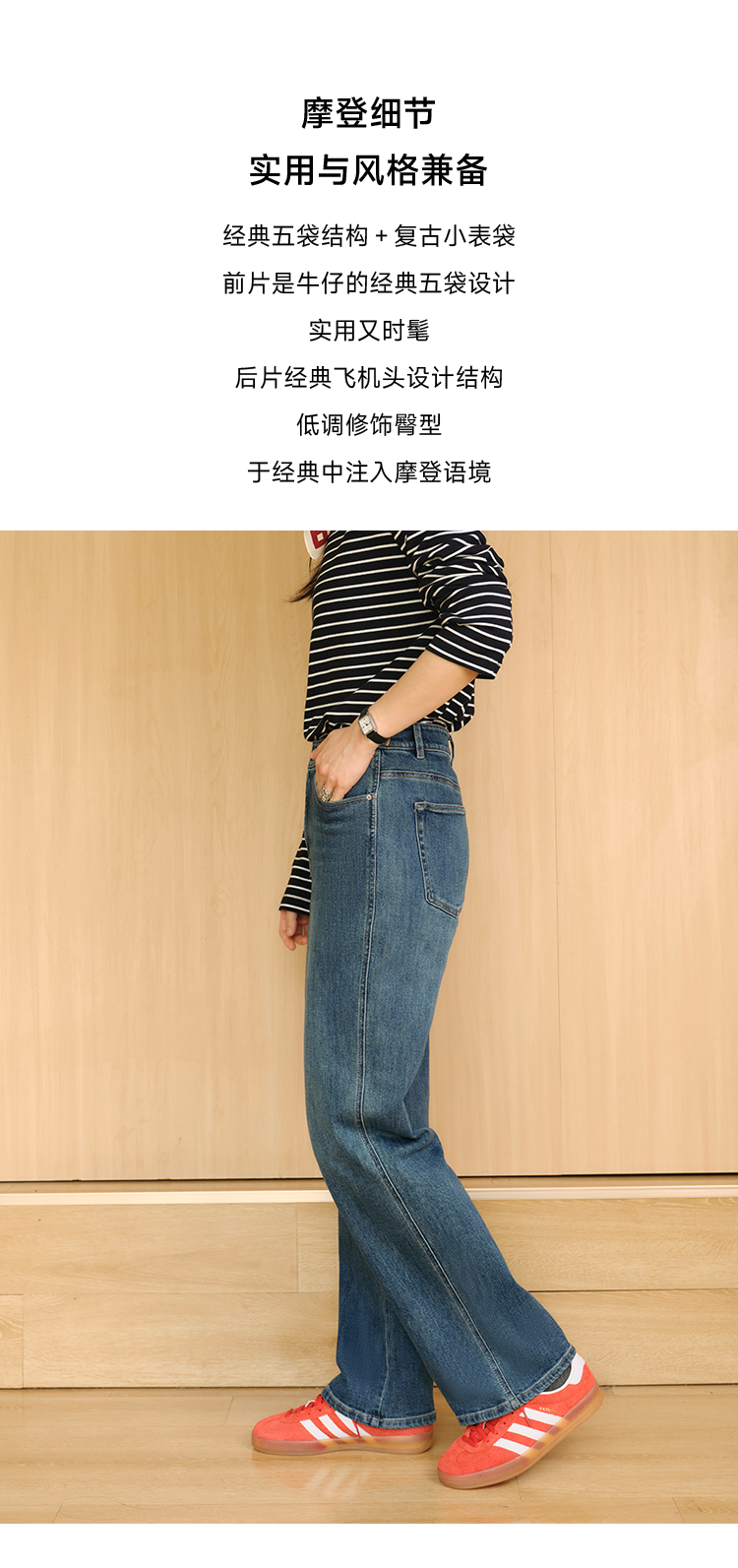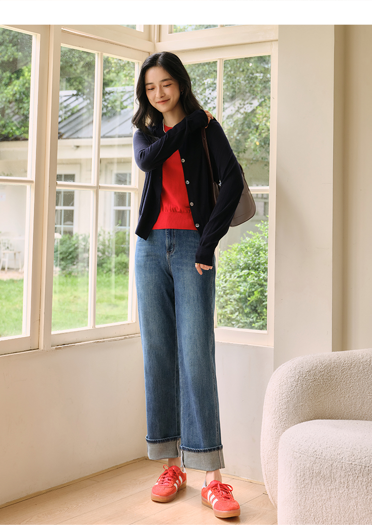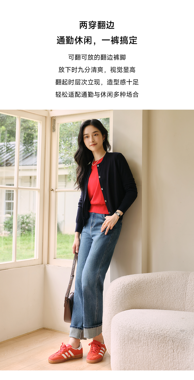 时髦两穿翻边直筒牛仔裤FCF3JEN089
