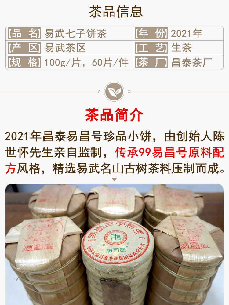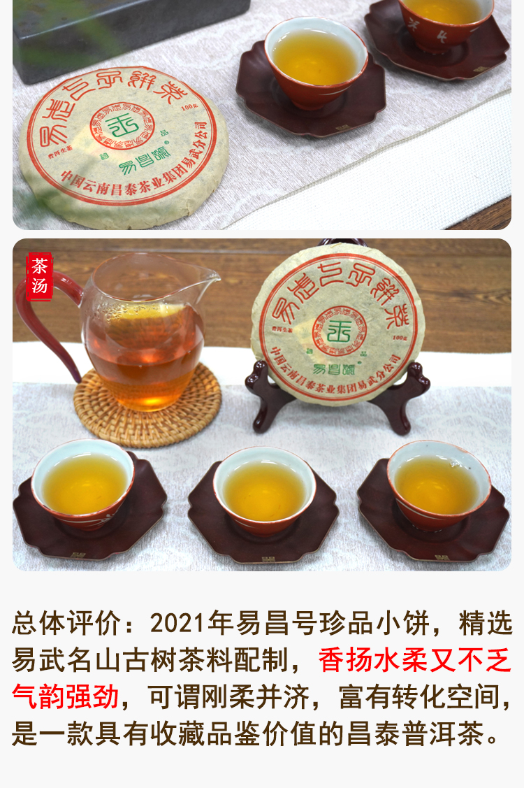 2021年昌泰易昌号小饼普洱茶生茶饼 经典易武高品质好原料 花香好口感 一片100克单片标价