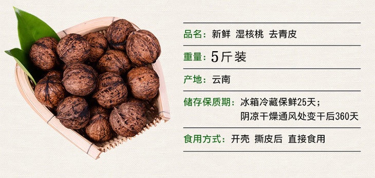 【云南新鲜湿核桃】去青皮新鲜湿核桃 百年古树核桃 薄皮嫩核桃 清甜脆嫩 甘甜味美 剥开薄壳 果仁饱满 赠送核桃夹 2种规格任选