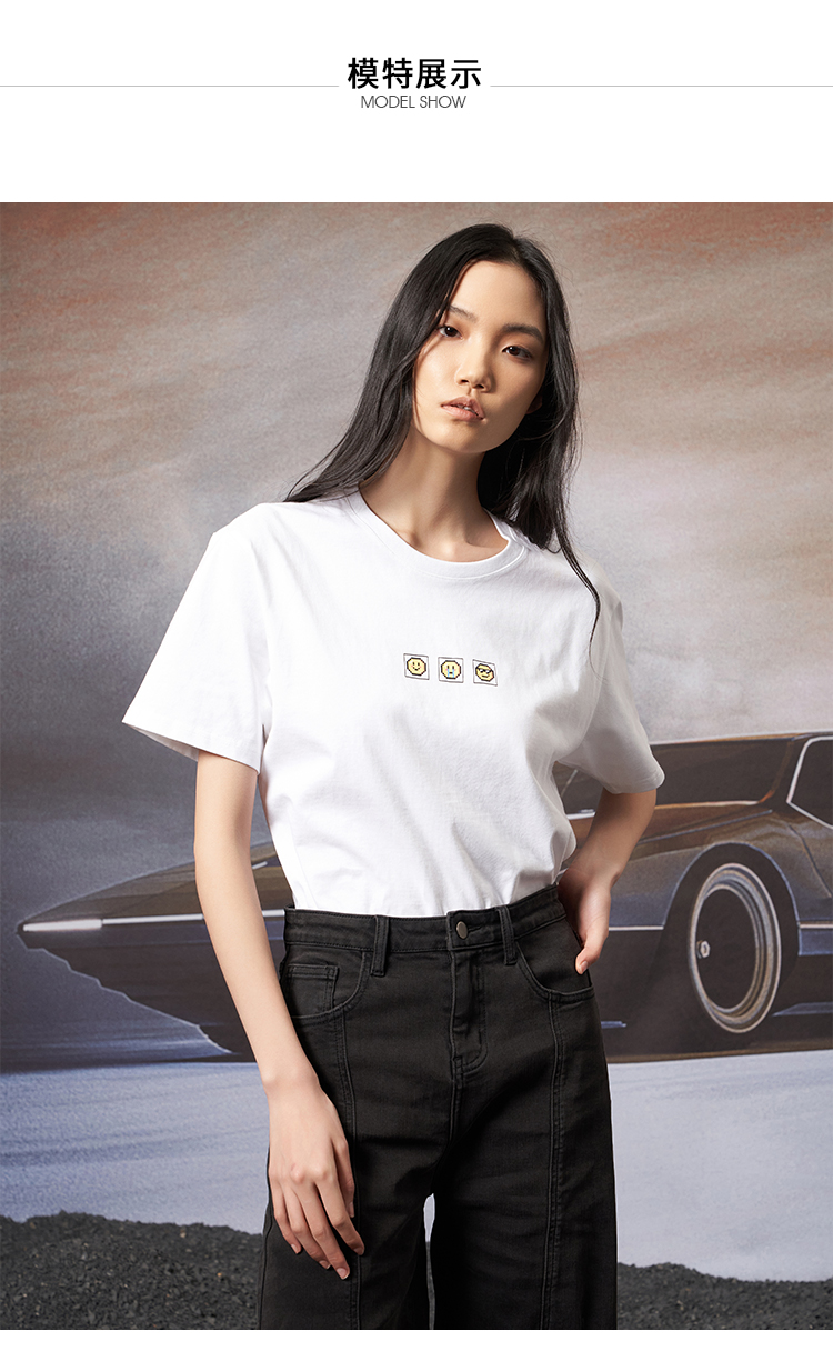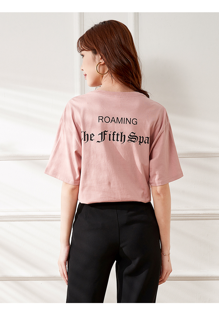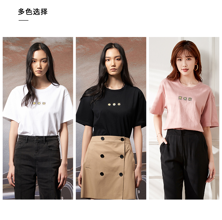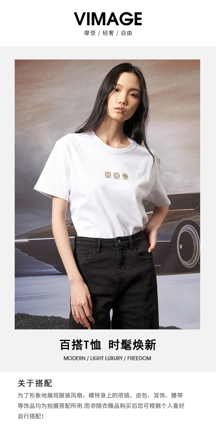 VIMAGE纬漫纪夏季新款宽松版100%纯棉简约圆领通勤纯色休闲T恤上衣V1702315