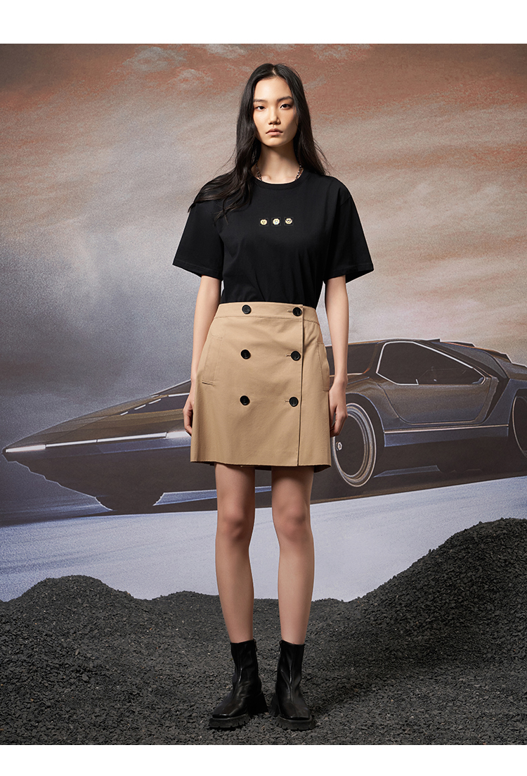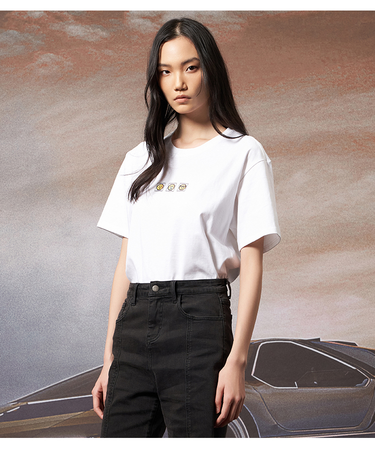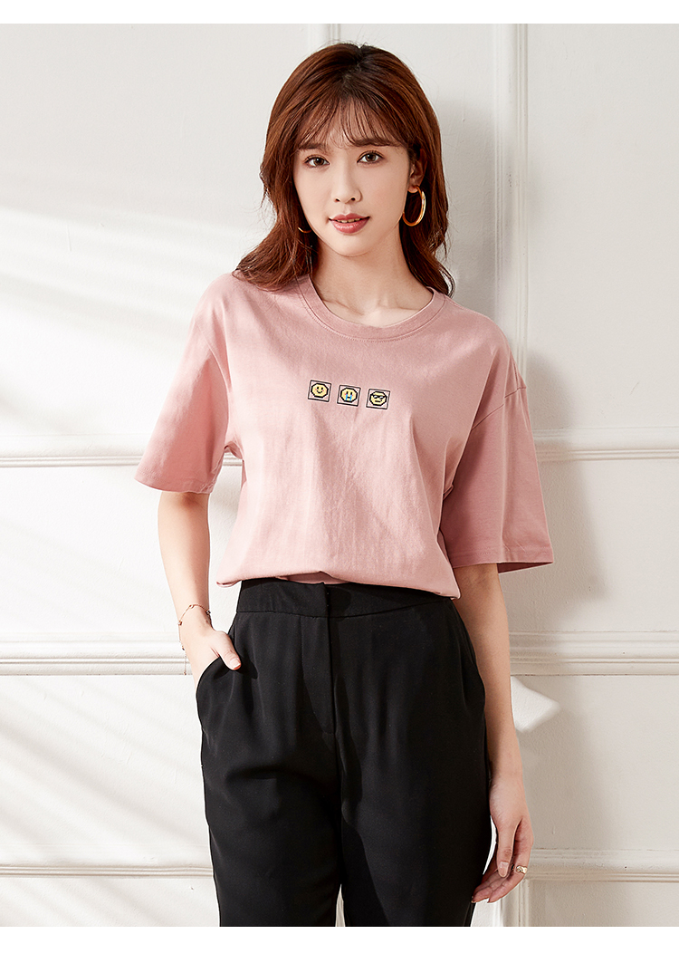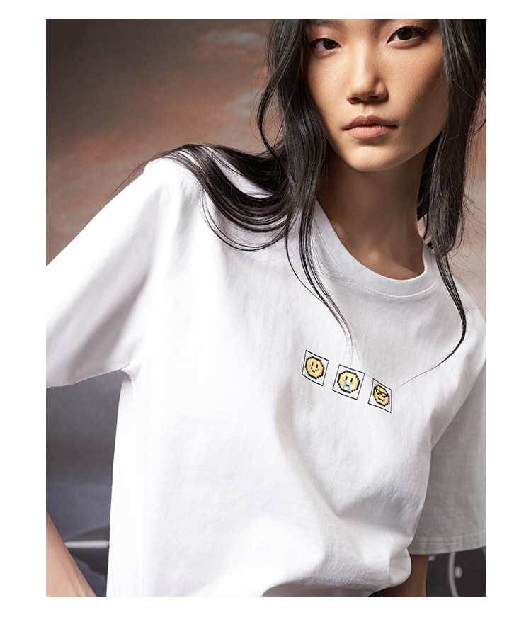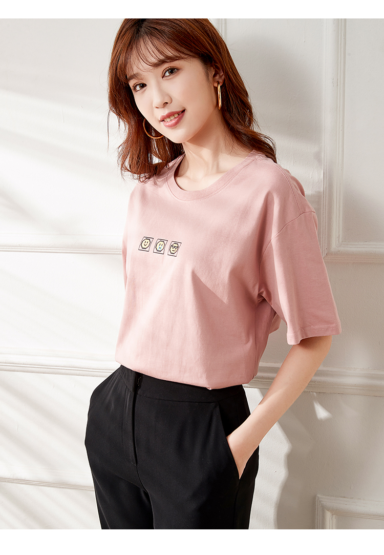 VIMAGE纬漫纪夏季新款宽松版100%纯棉简约圆领通勤纯色休闲T恤上衣V1702315