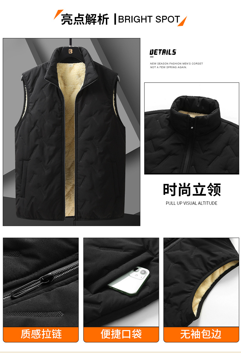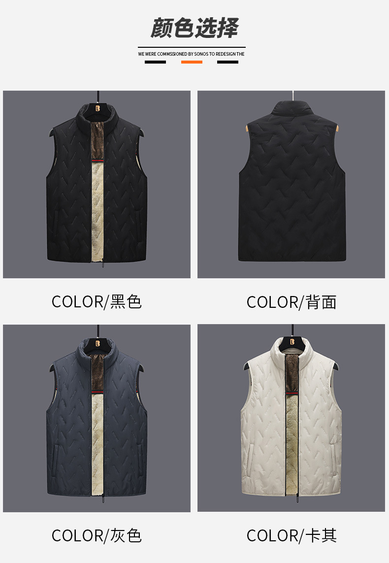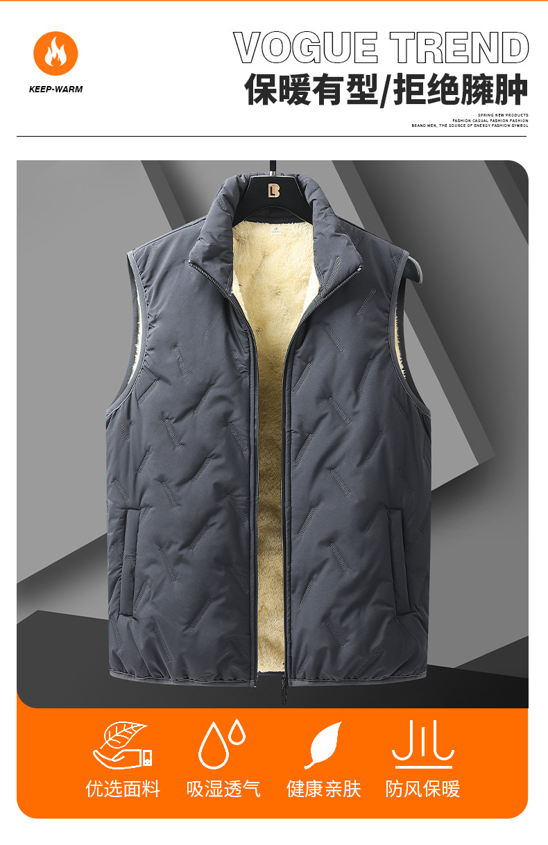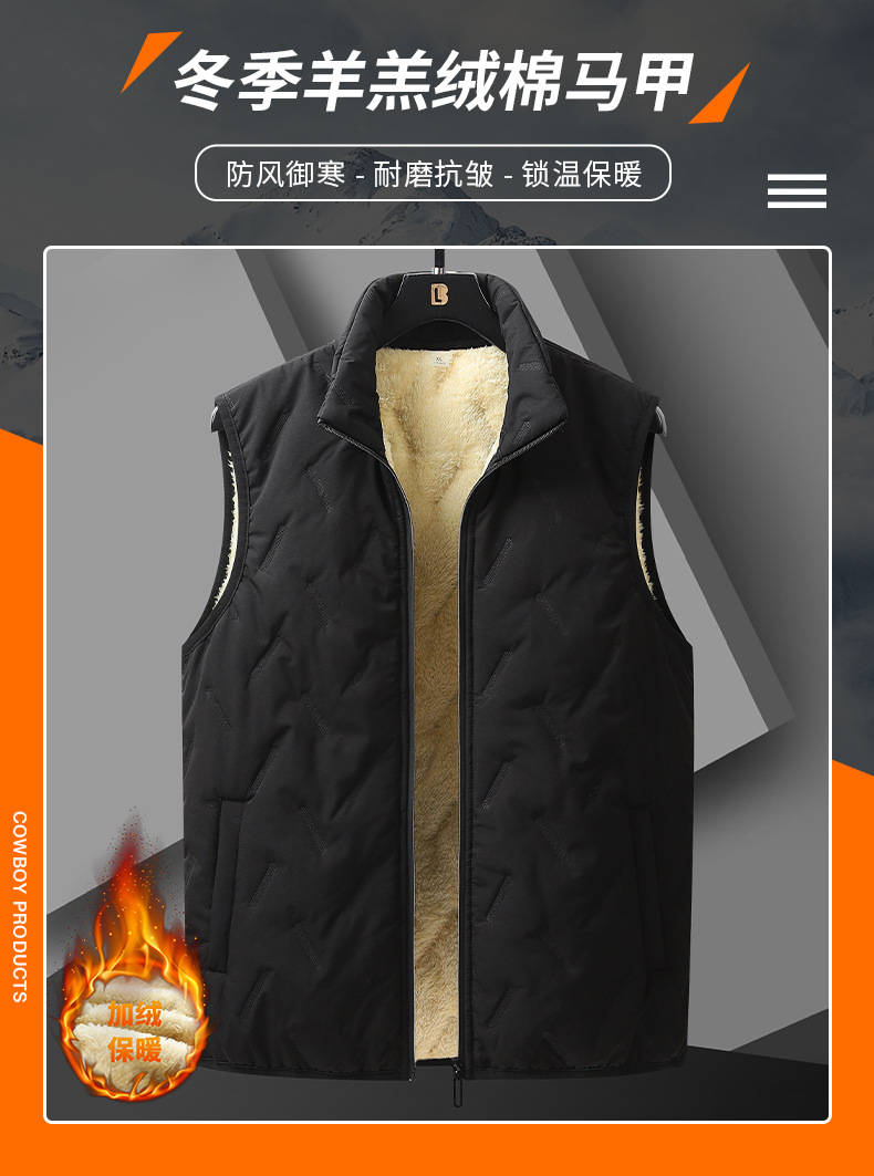 红览 羊羔绒马甲男士秋冬季加绒背心955