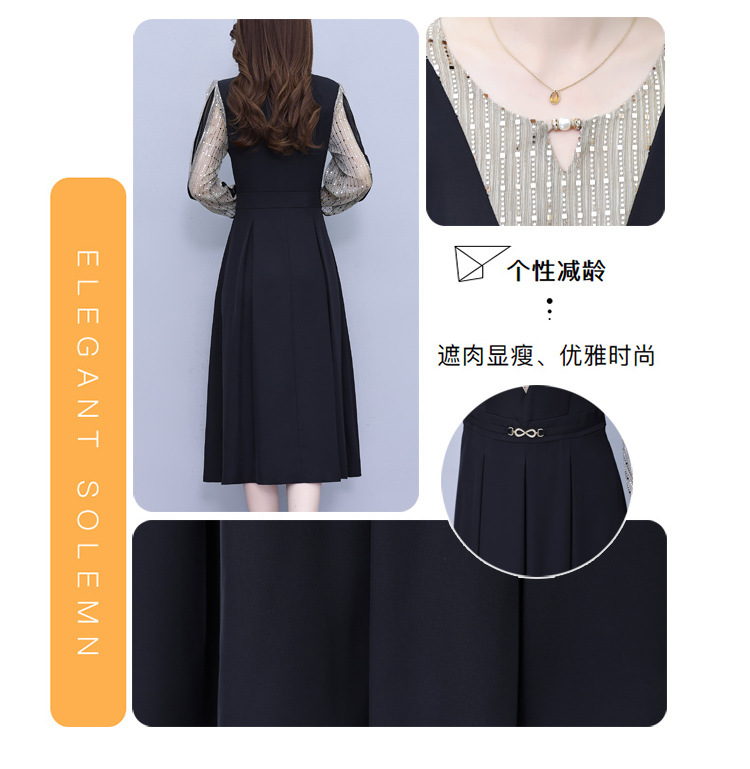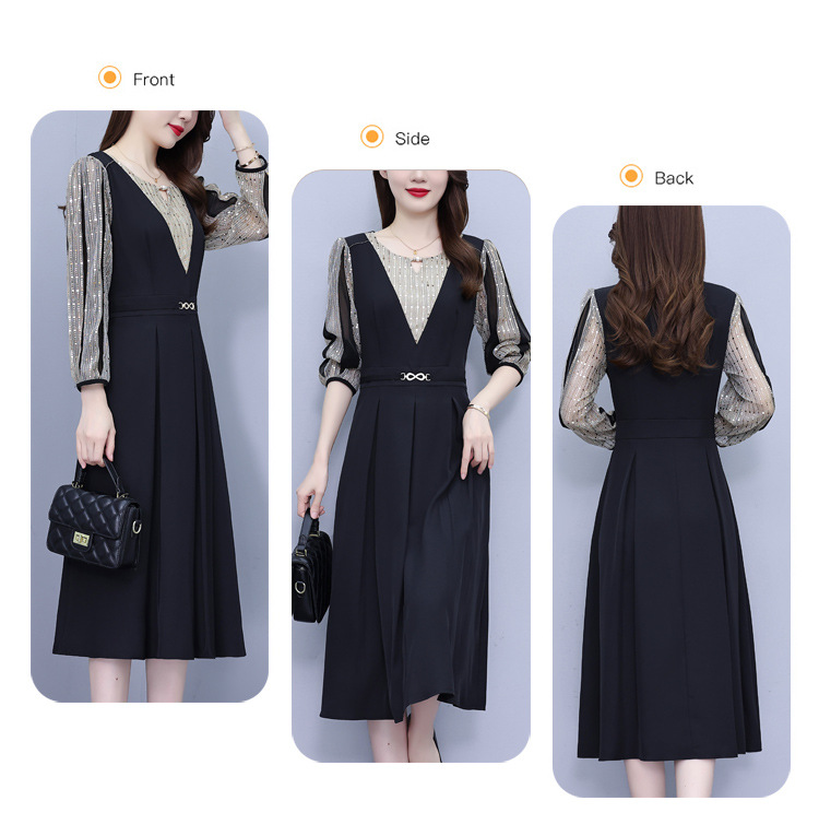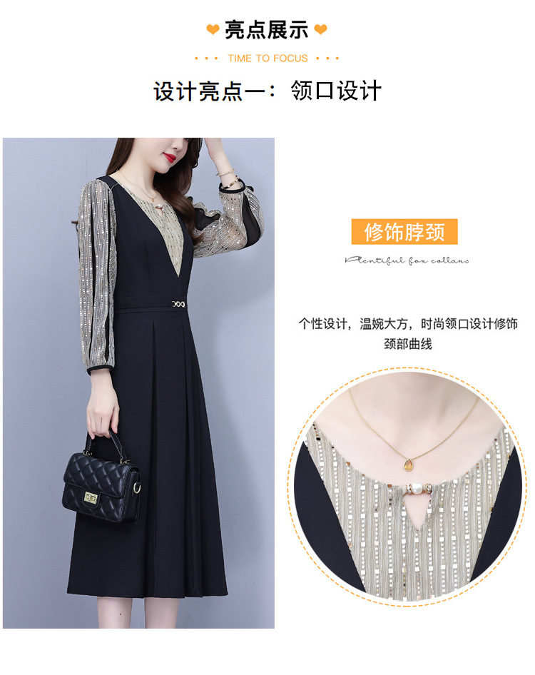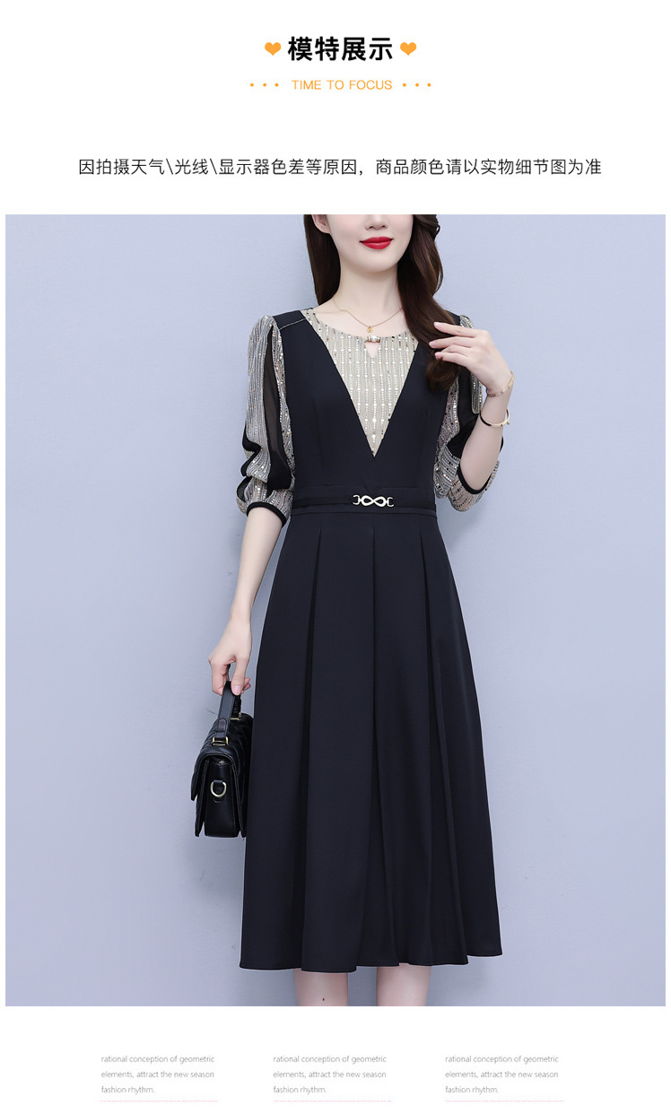 雀说新款时尚洋气圆领撞色拼接中长裙AL2622