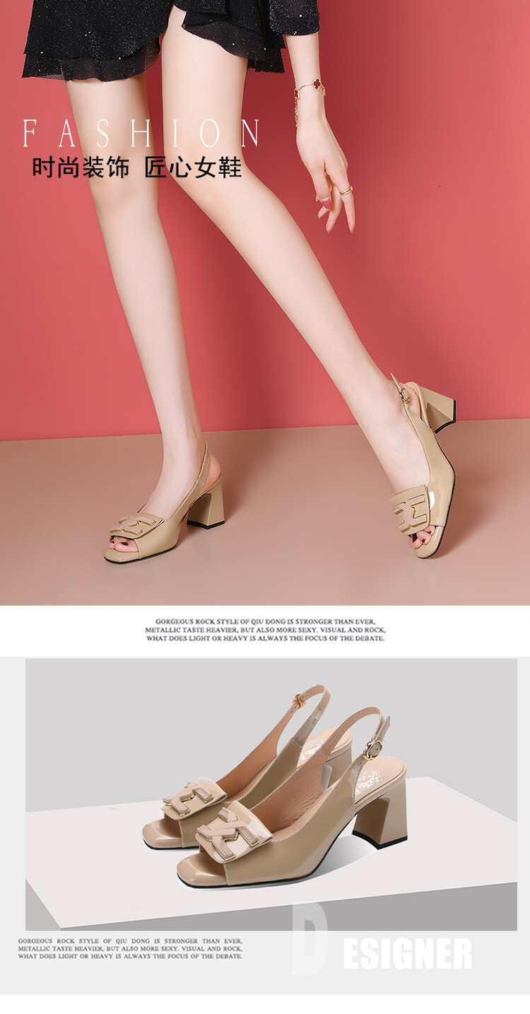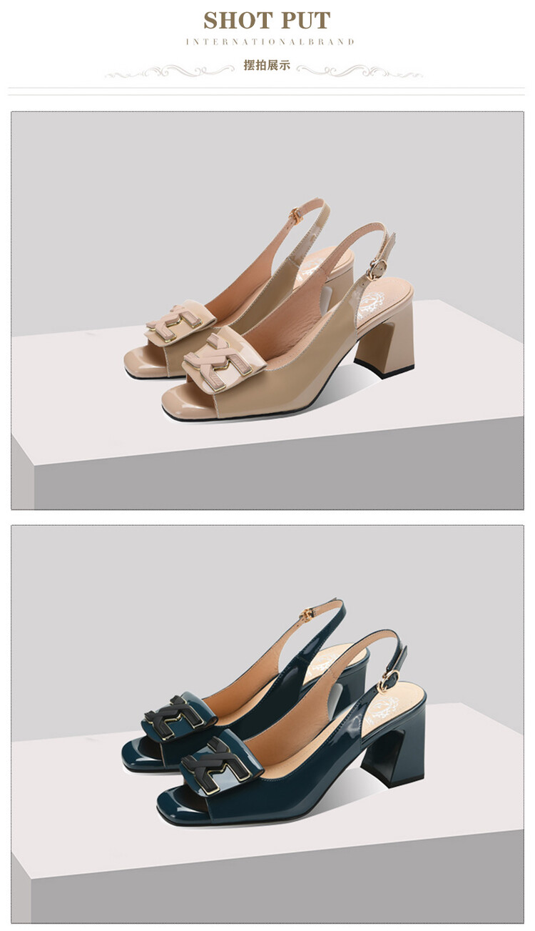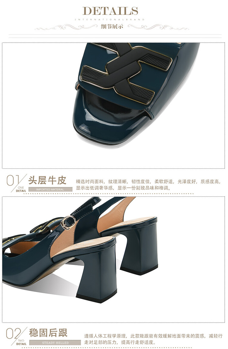 【预售5天】春夏季款漆皮金属扣玛丽珍单鞋后空包头凉鞋女粗跟中跟高跟鞋XYZP&x01--11