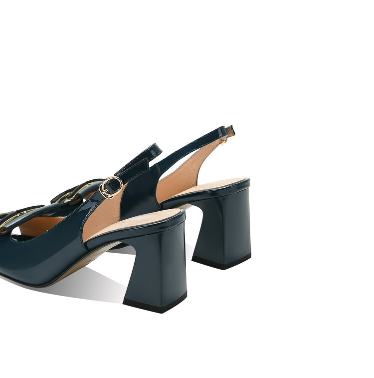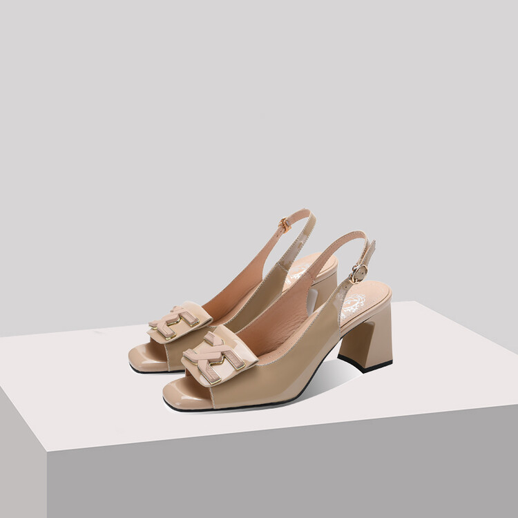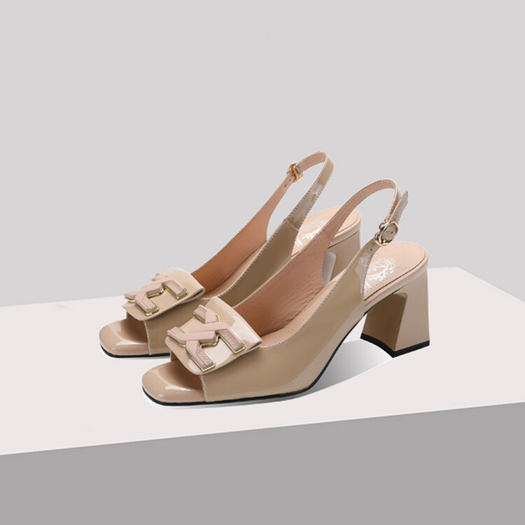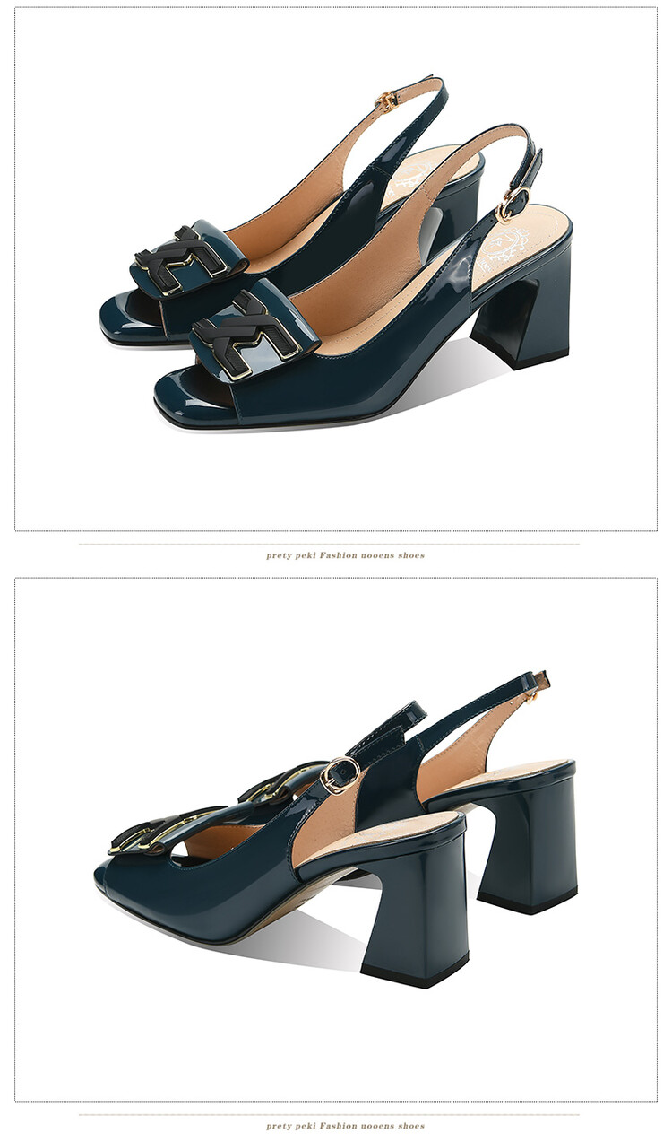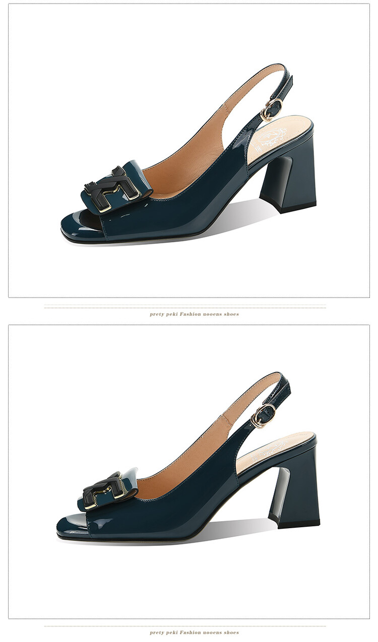 【预售5天】春夏季款漆皮金属扣玛丽珍单鞋后空包头凉鞋女粗跟中跟高跟鞋XYZP&x01--11