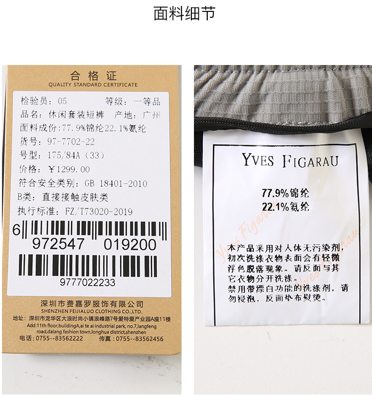 YvesFigarau伊夫·费嘉罗新款休闲套装短裤977702