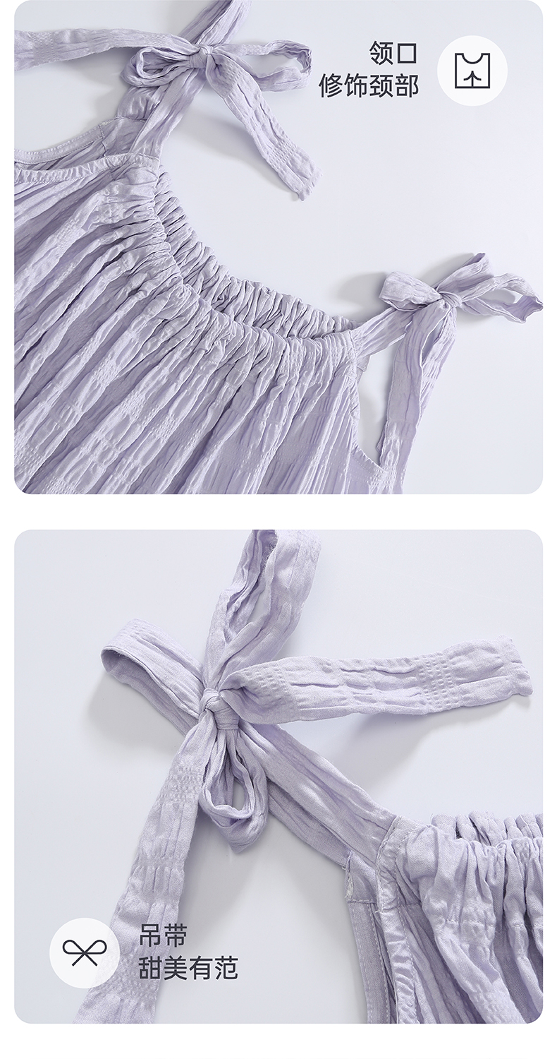芬腾吊带睡裙女夏天新款纯色薄款圆领甜美可爱少女透气连衣中长裙