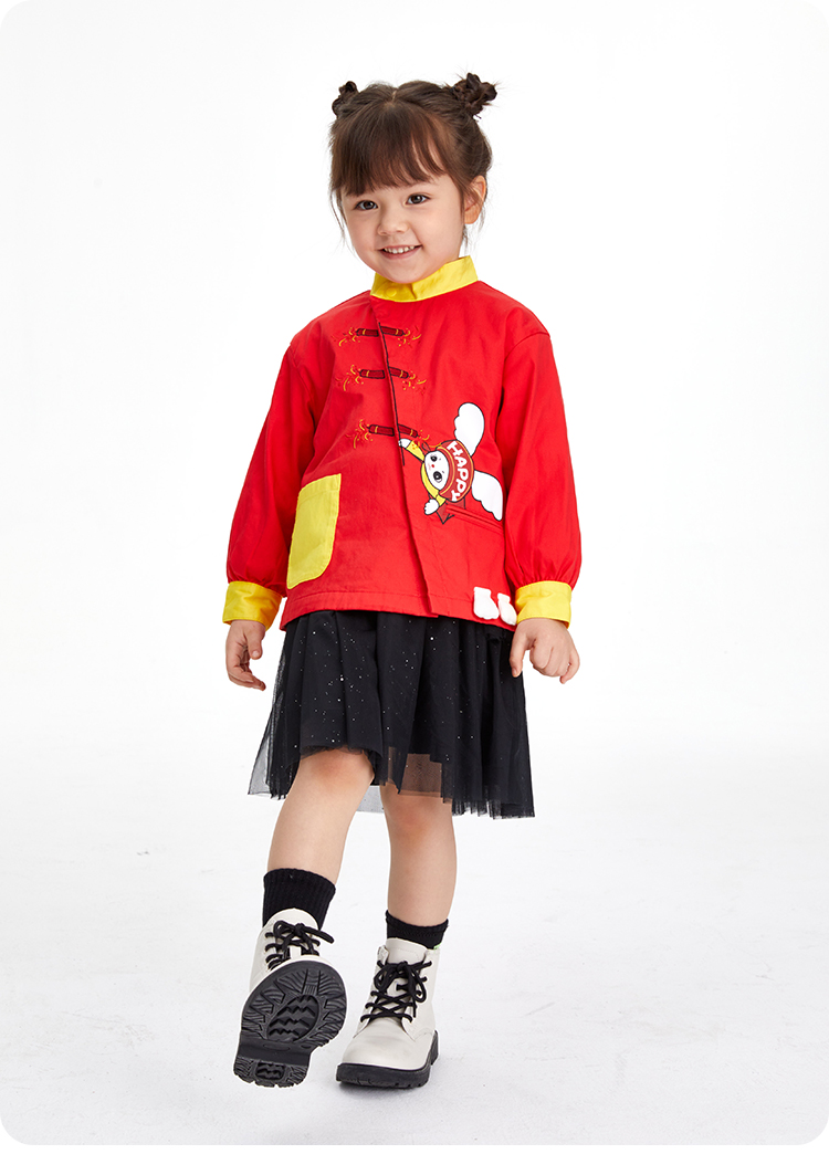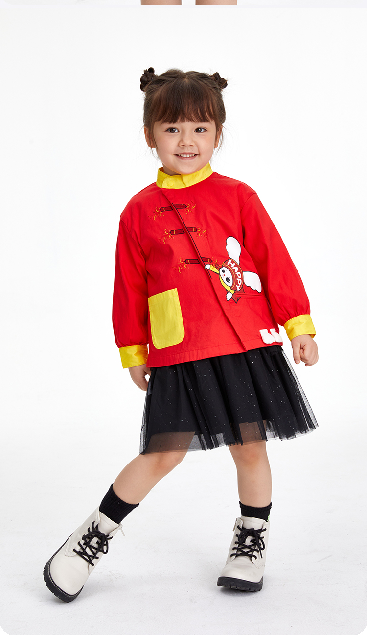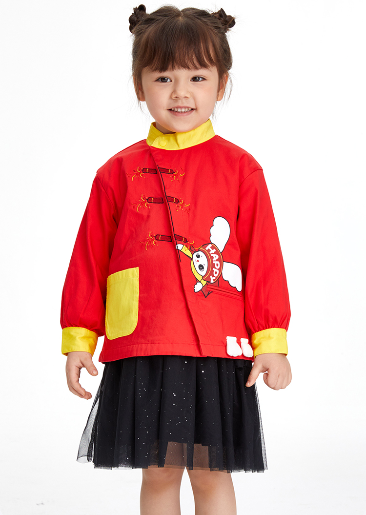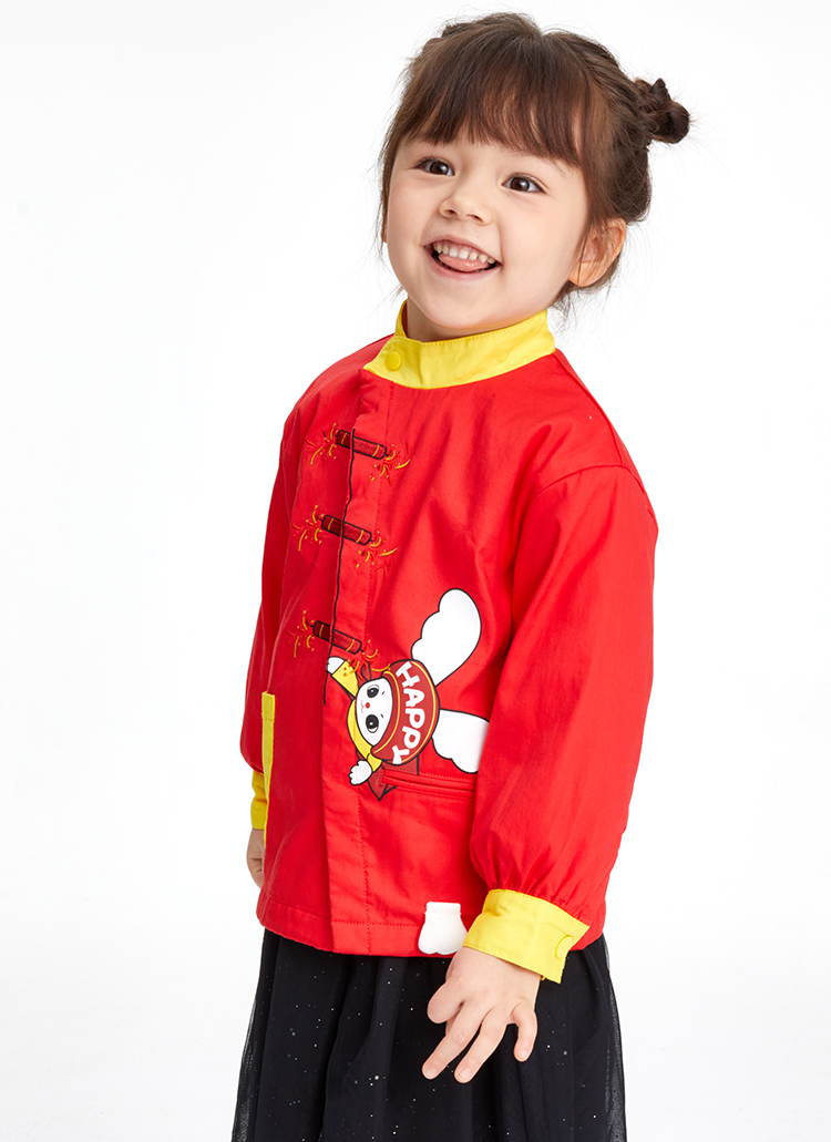 【新年红】女童夹克外套秋新款儿童国风长袖立领时髦宝宝上衣安奈儿童装TM315021