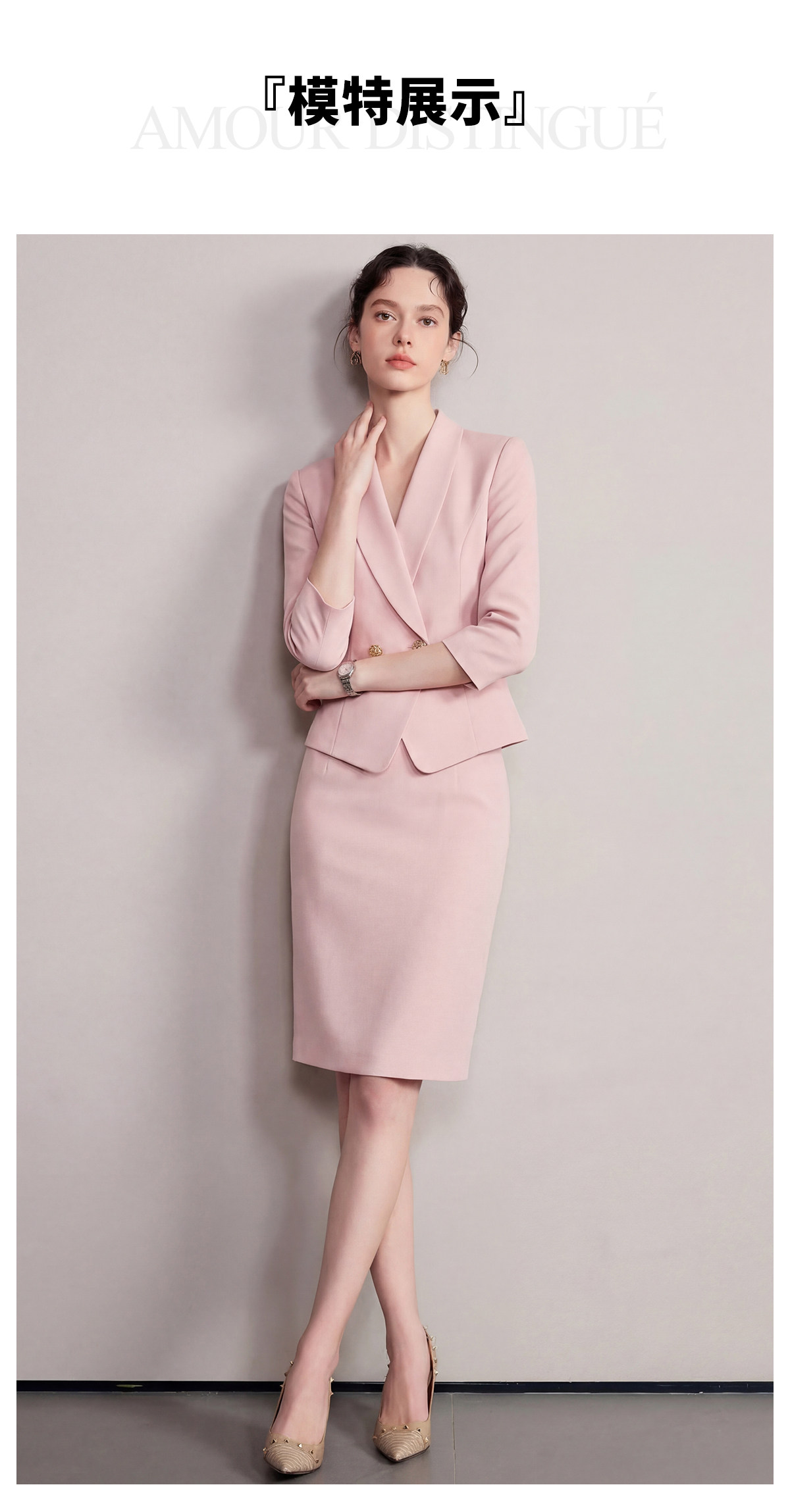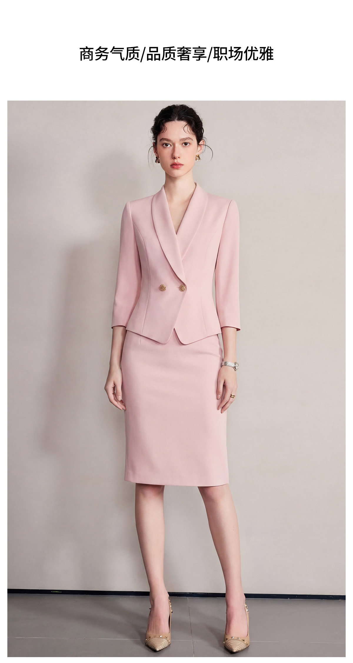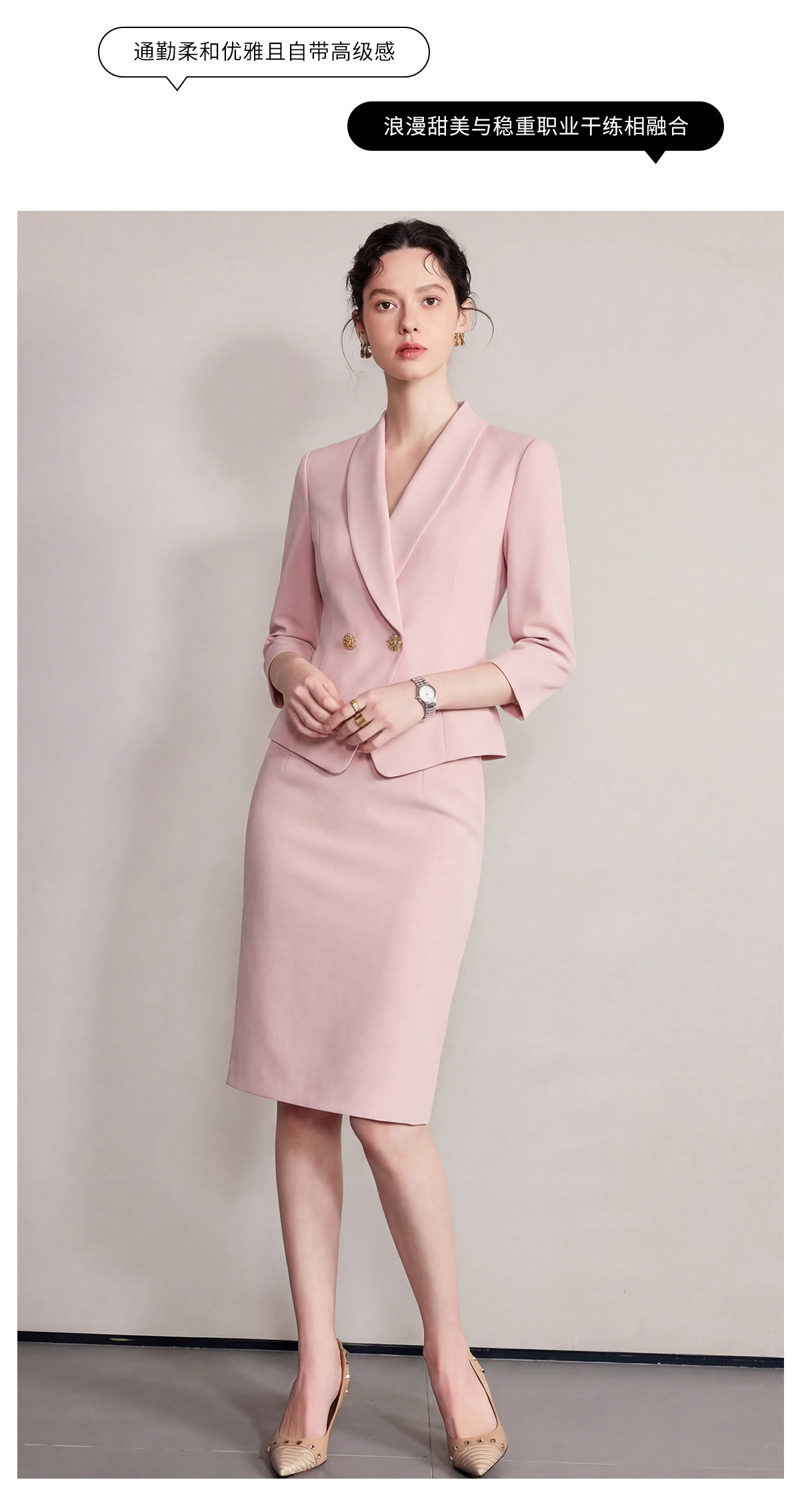 IWY/粉色七分袖西装套裙女夏季气质修身通勤正式场合职业裙装6CS37