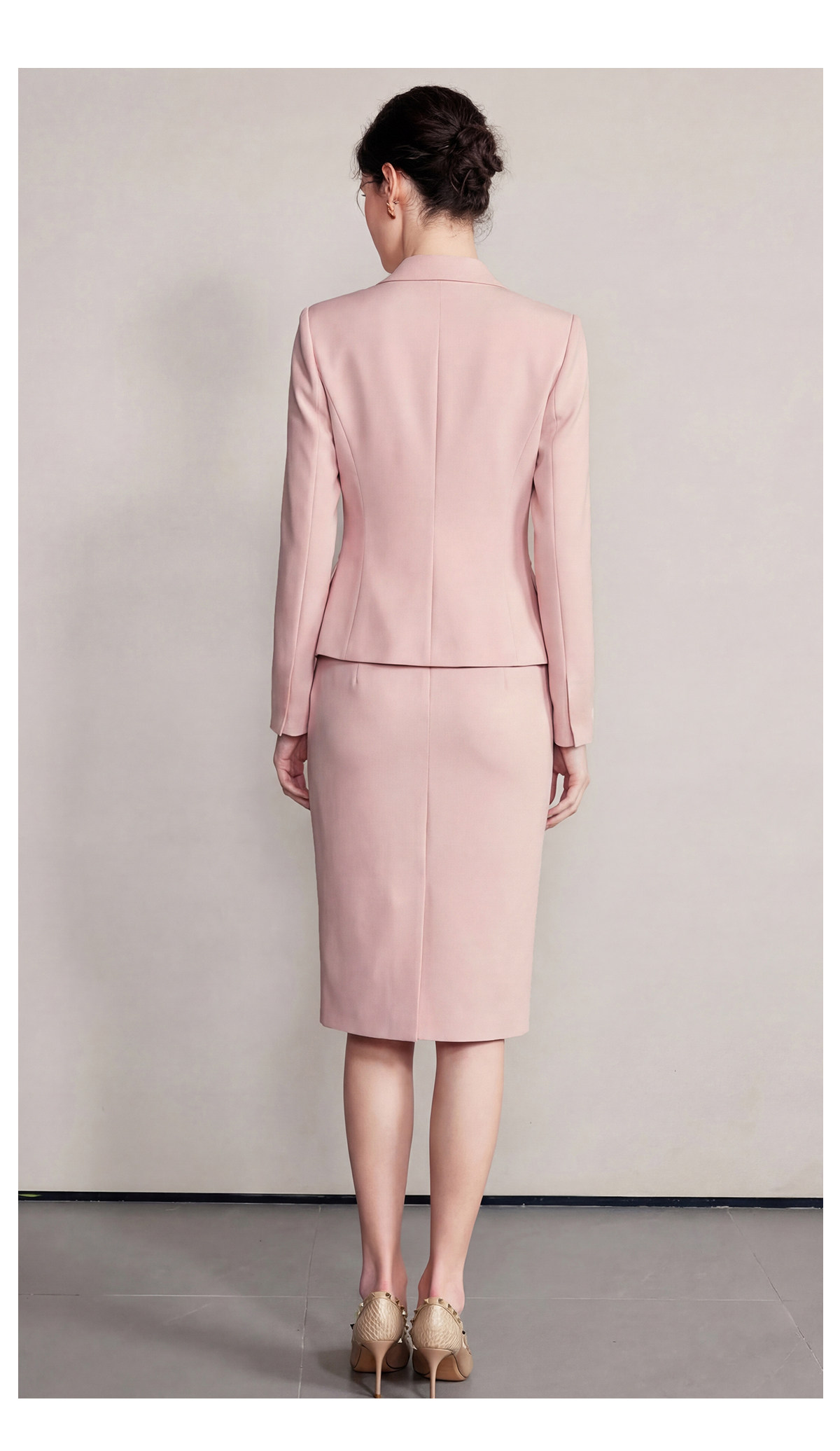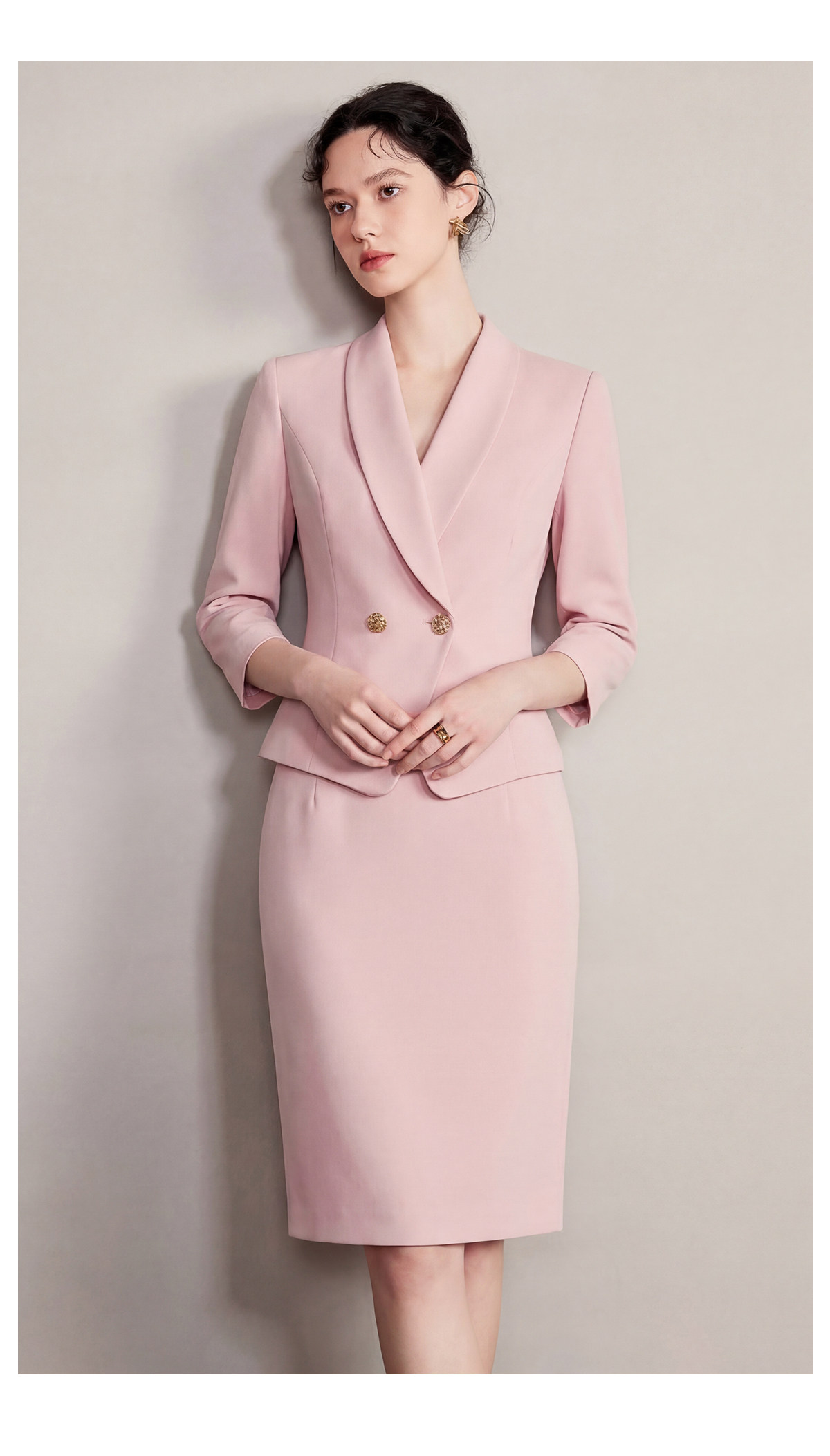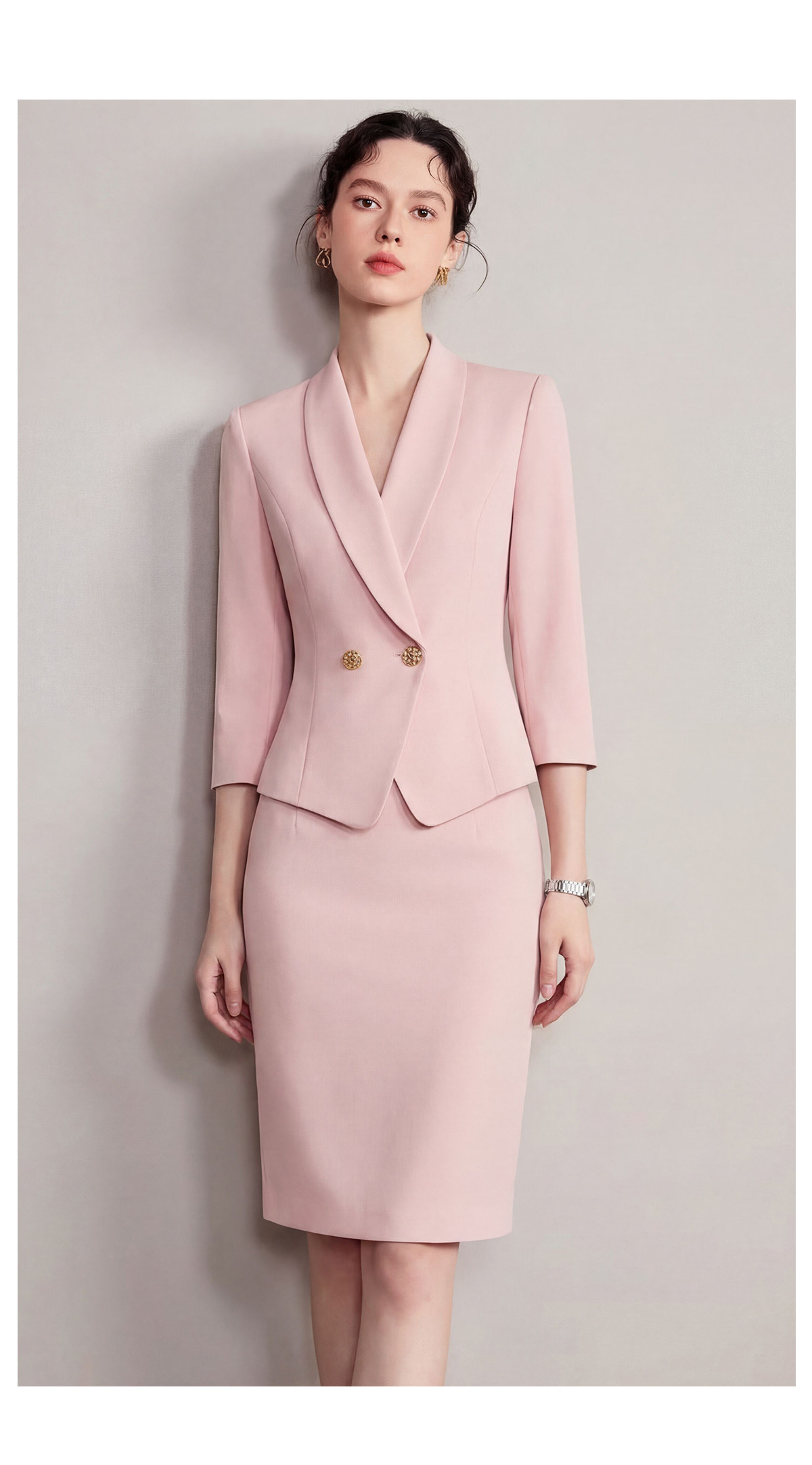 IWY/粉色七分袖西装套裙女夏季气质修身通勤正式场合职业裙装6CS37