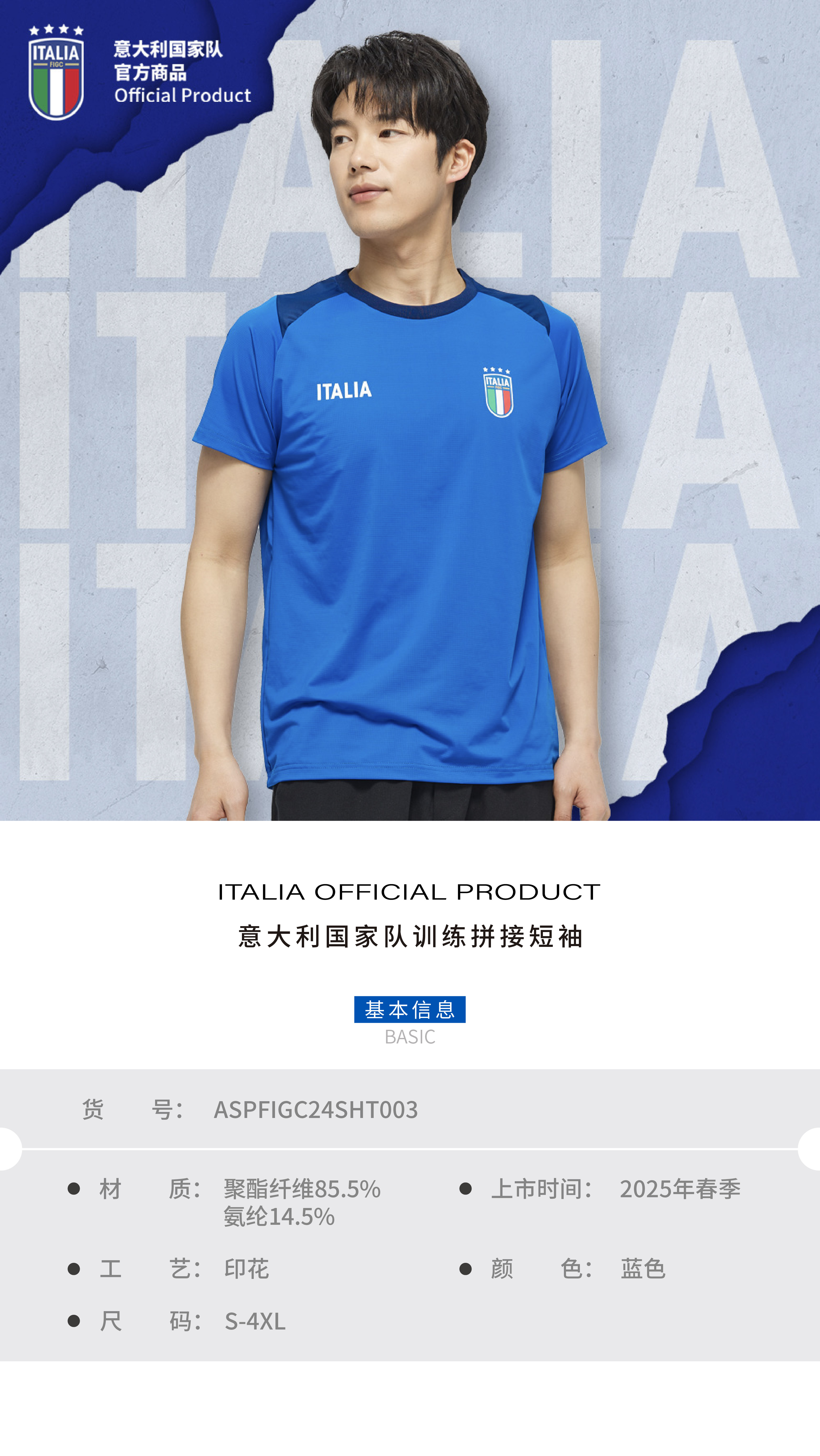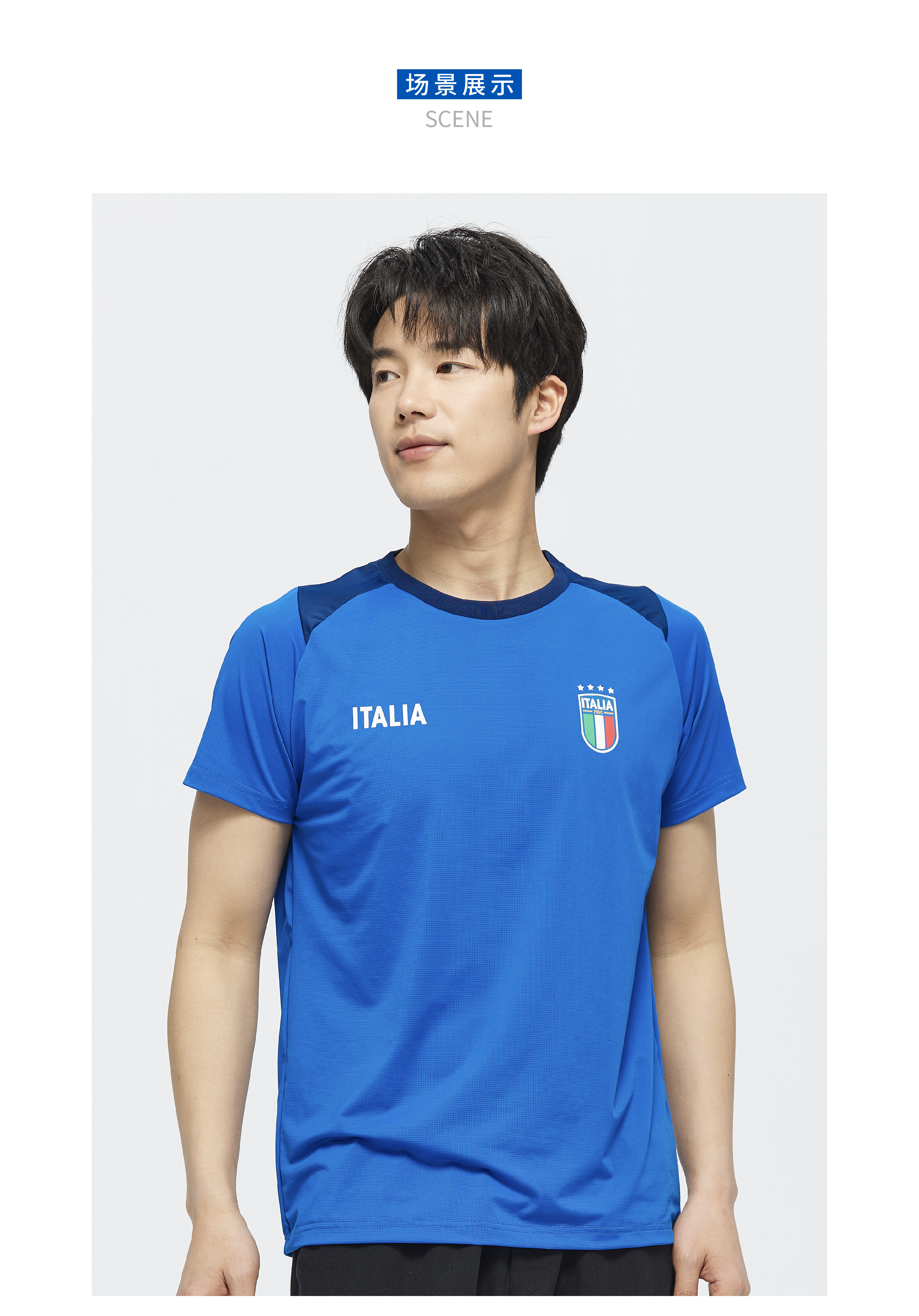 【官方正版】意大利国家队 | 经典队徽拼接速干短袖运动T恤简约
