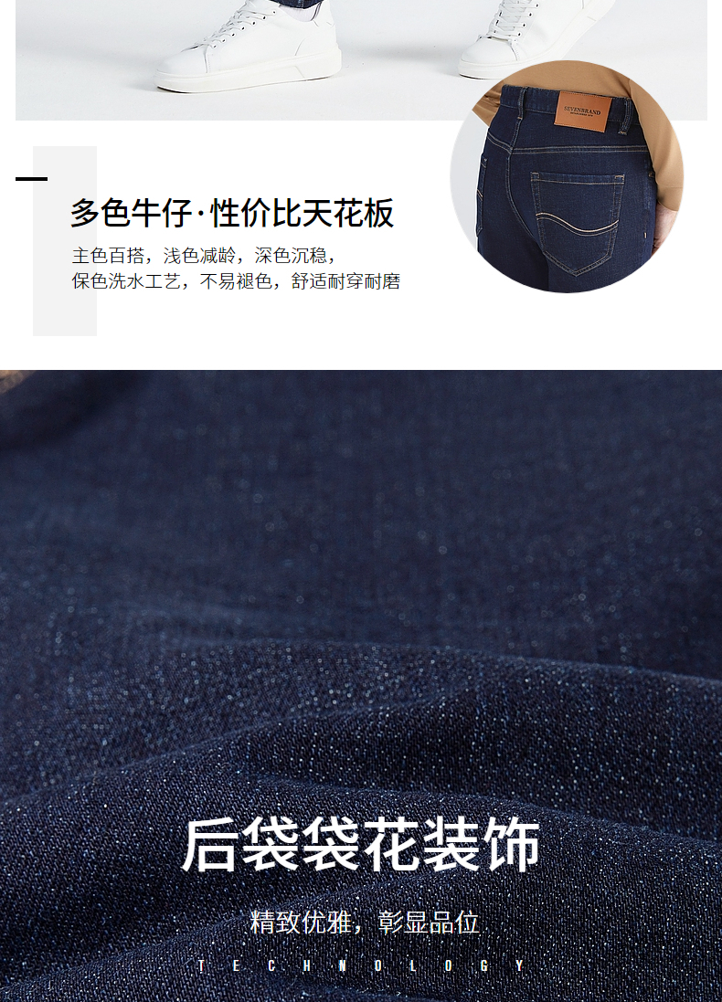【特价】柒牌裤子牛仔裤男春秋款商务休闲水洗中腰合体直筒男装长裤子 123H71011