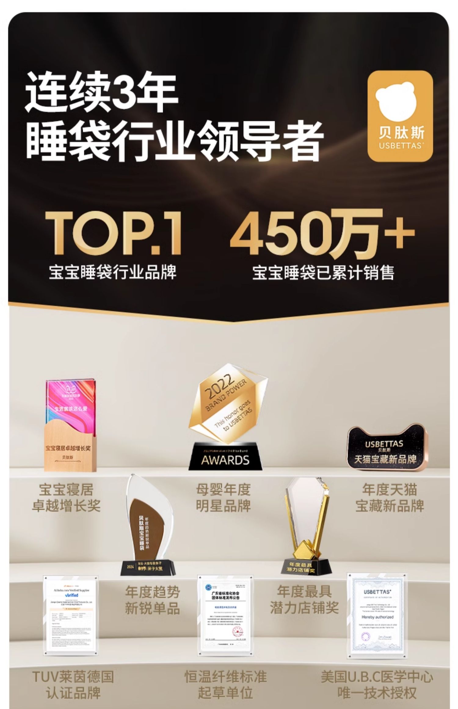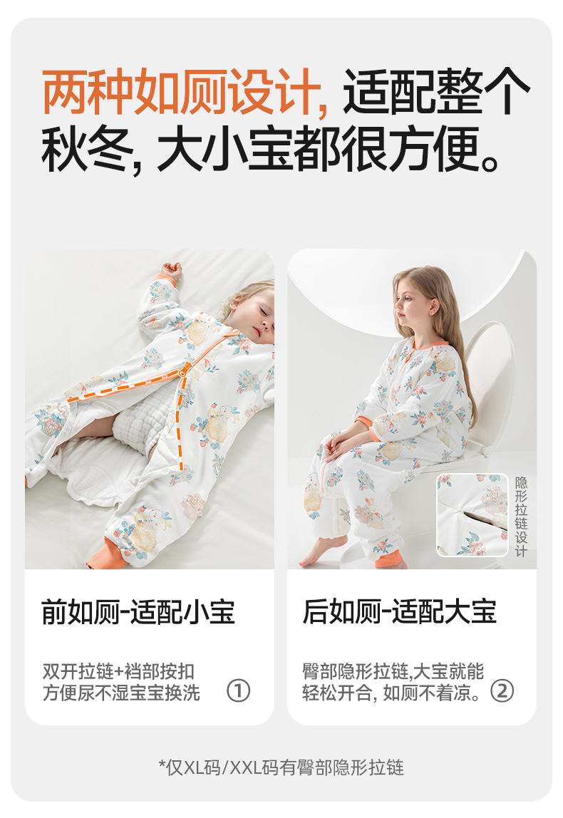 贝肽斯【肽暖】婴儿睡袋秋冬款暖姜恒温宝宝分腿儿童防踢被四季款