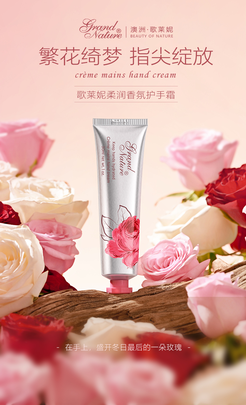 歌莱妮玫瑰柔润香氛护手霜滋润保湿补水嫩白天然玫瑰香秋冬防干裂新品30ml