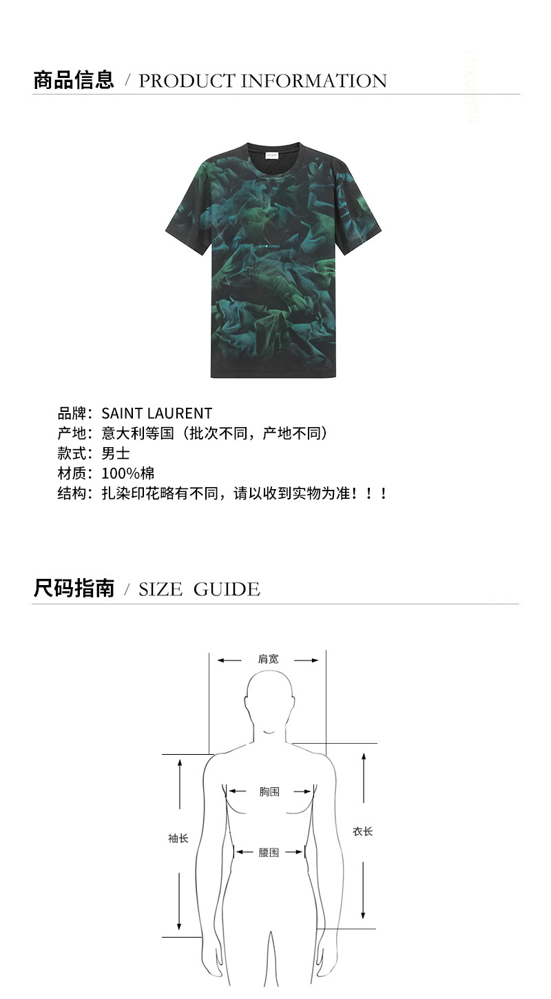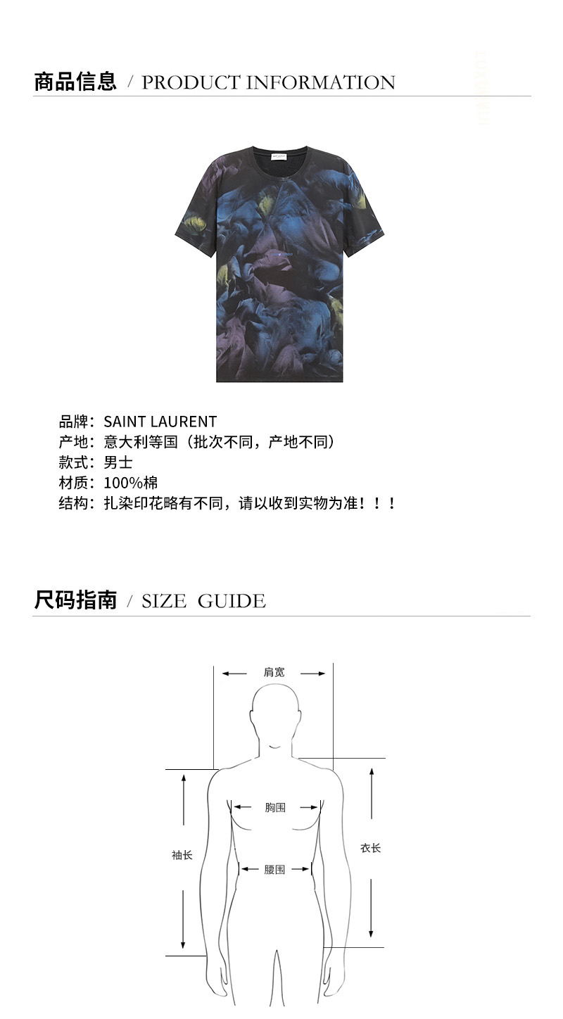 SAINT LAURENT PARIS/SAINT LAURENT PARIS 2021款 男士短袖T恤 男士棉质扎染圆领短袖T恤 652056 Y36CU