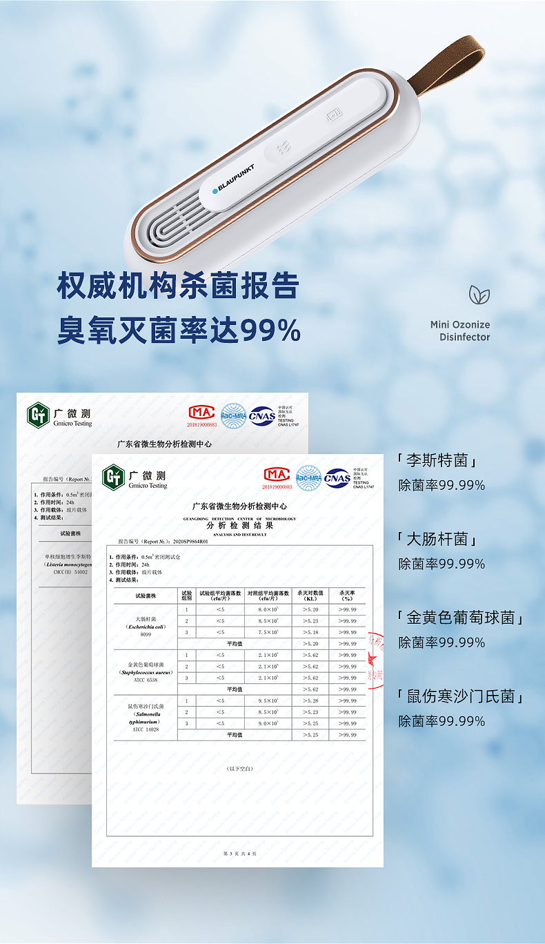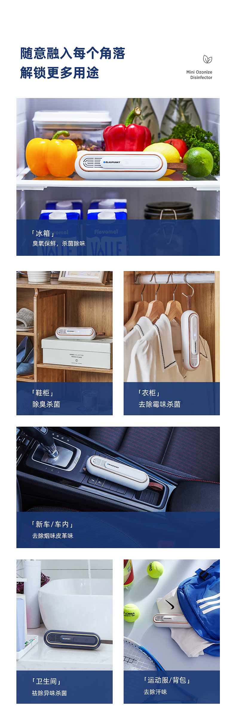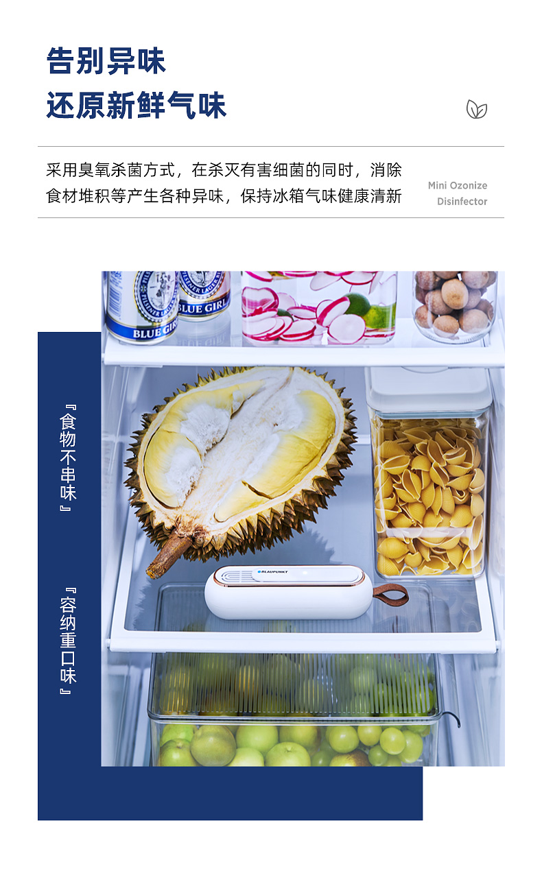 德国蓝宝家用便携抑菌净味器净化保鲜除味器杀菌臭氧机去味除臭棒除异味神器
