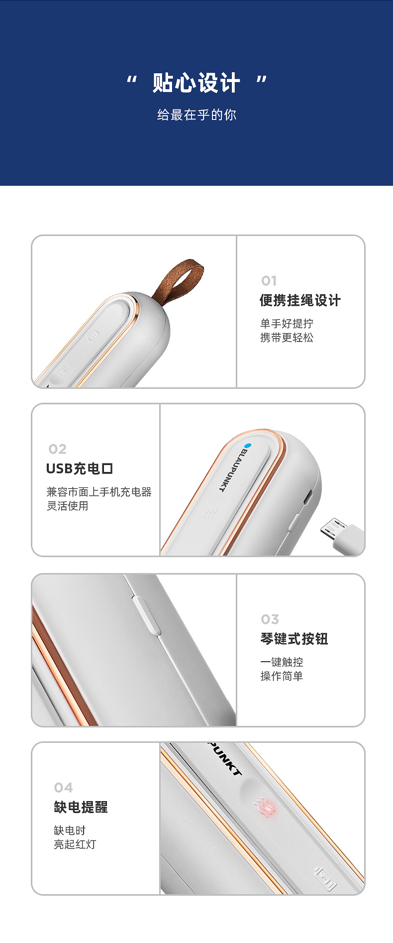 2、细节展示:材质、工艺、做工等;