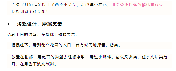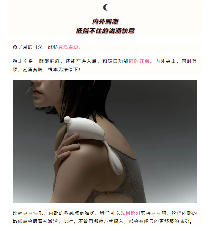 当然,你身体其他的敏感点,也一样值得被照顾。兔子月耳朵的设计,让它适合了所有的敏感点。