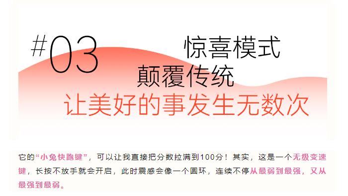 兔耳侧面圆滚滚地在身上滚压刺激,这时候震感比较分散,没有那么强烈,正适合带给脖颈、背后、前胸这些位置一些酥麻和放松。
