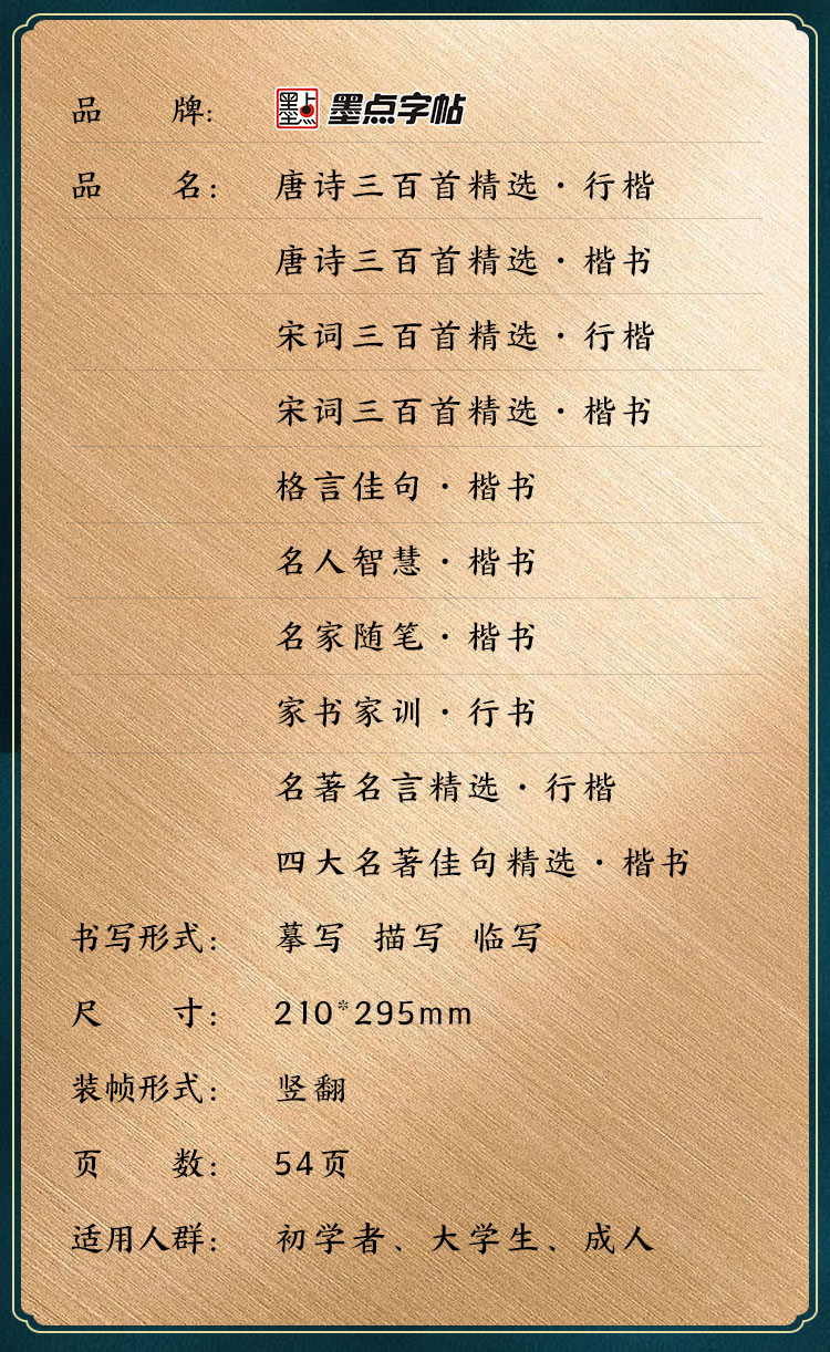墨点字帖执笔写经典10本楷书行楷字帖唐诗宋词控笔训练字帖成人练字硬笔书法练字本初学者字帖学生练字帖钢笔临摹正楷字帖