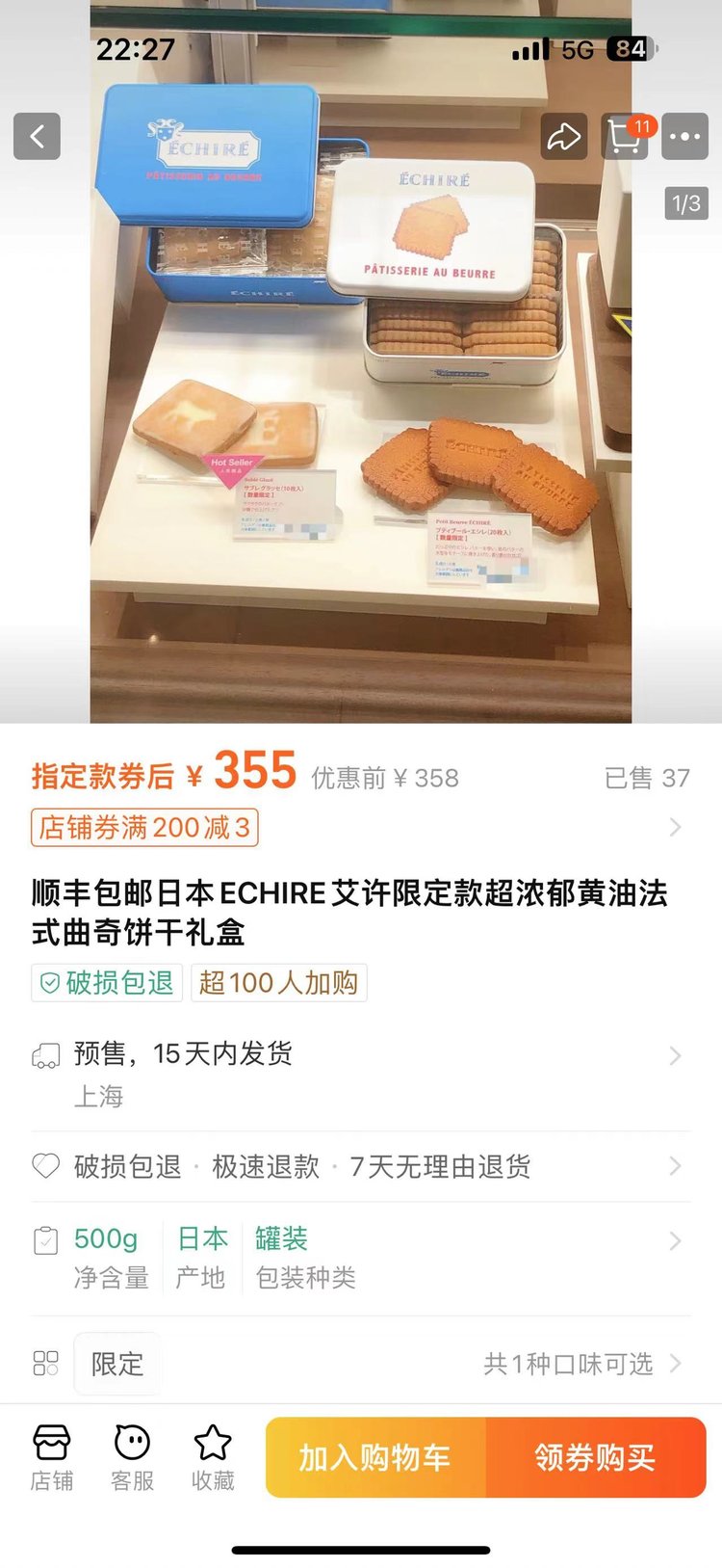 日本ECHIRE黄油曲奇:300多人民币每盒。