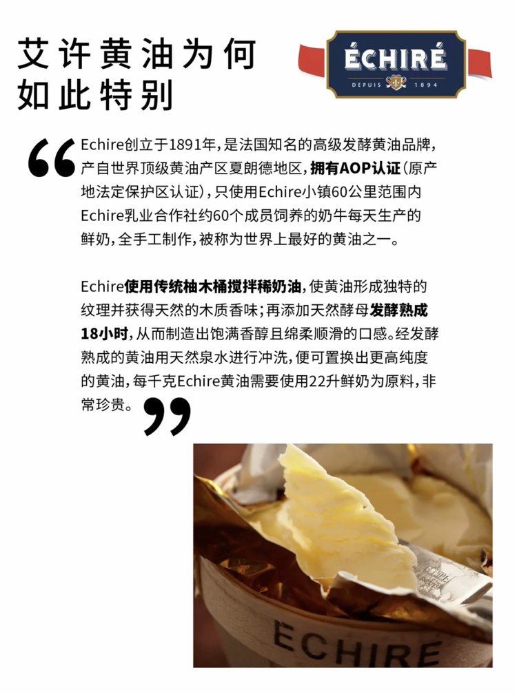 最重要的就是黄油品牌,艾许黄油拥有130年历史天花板级别的黄油品牌高级的食材,健康的美味,一定要试一下