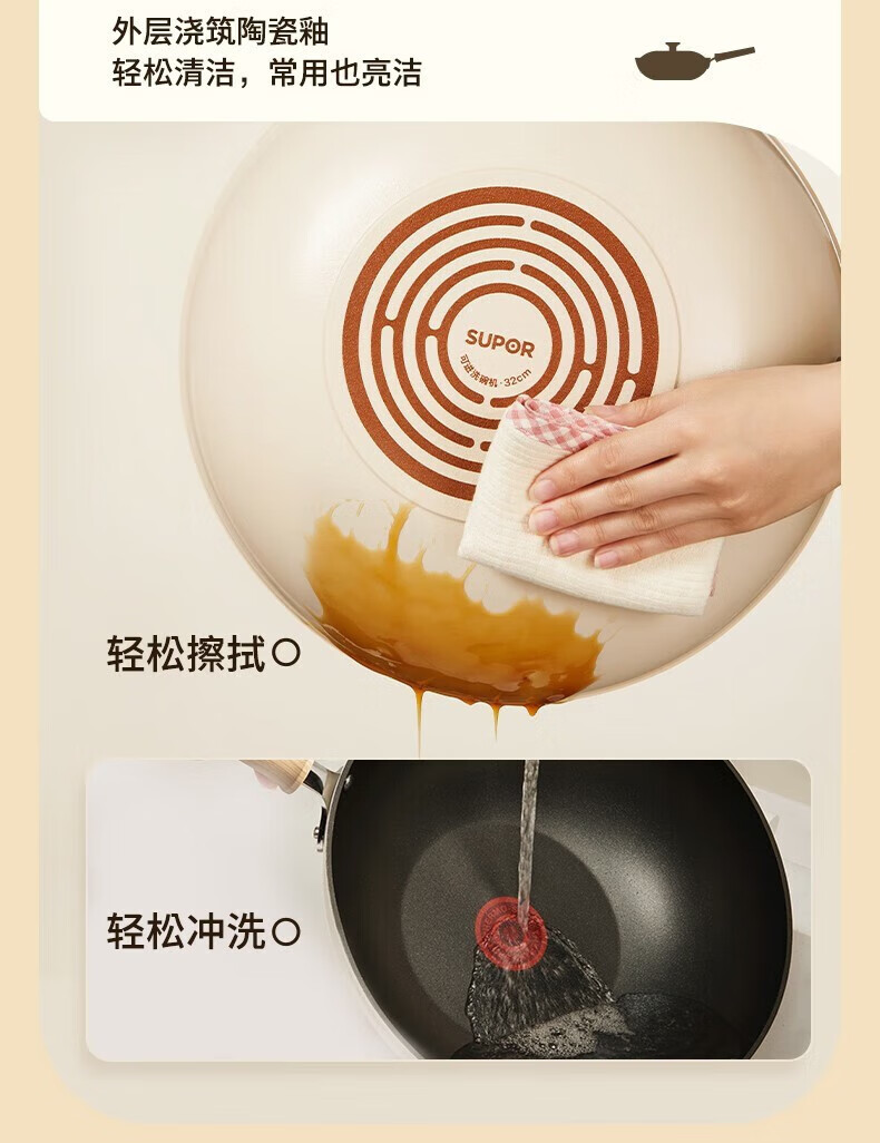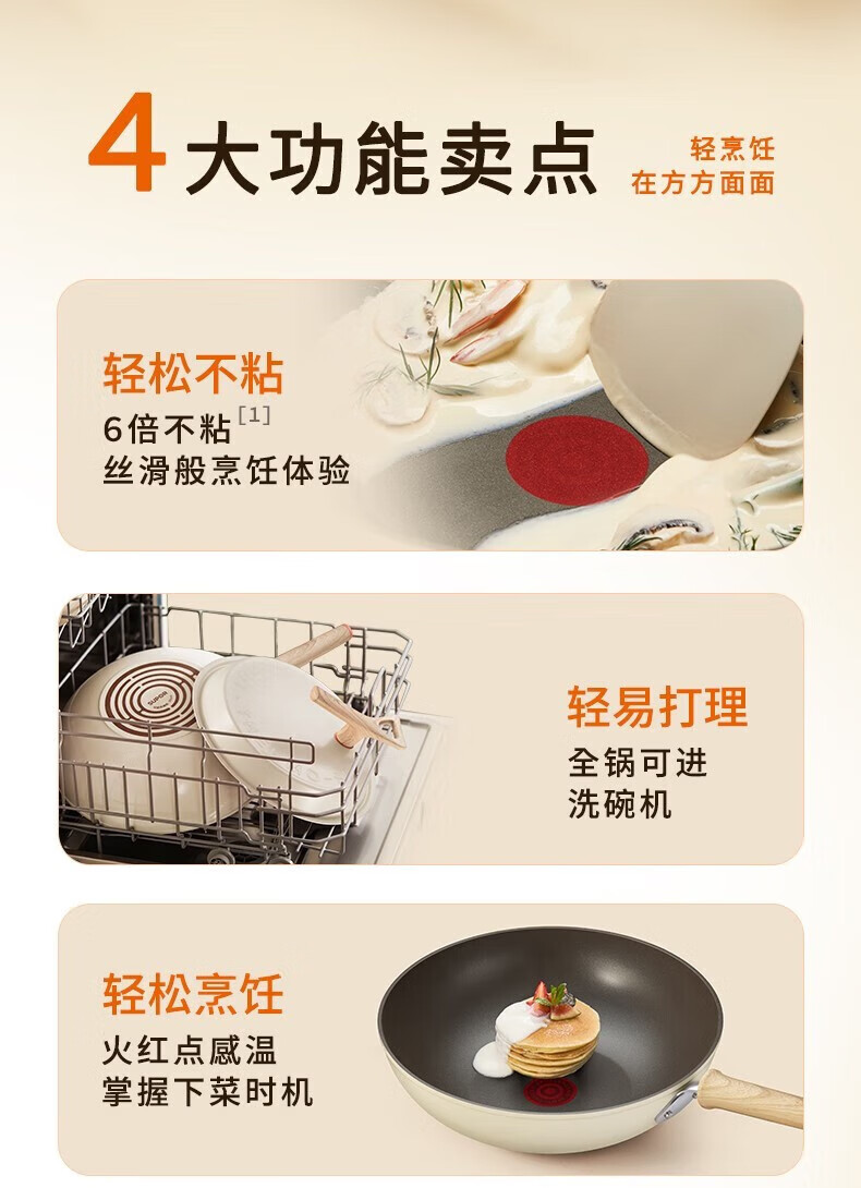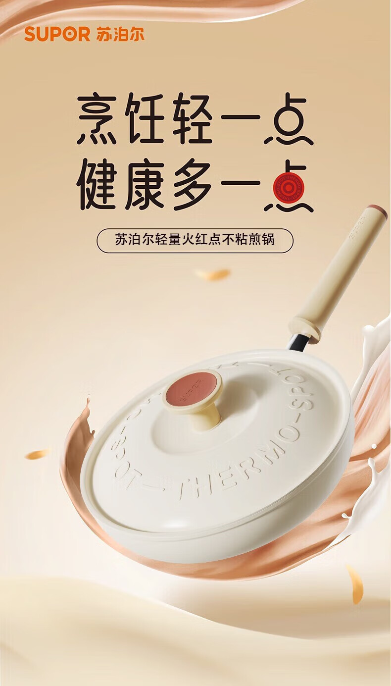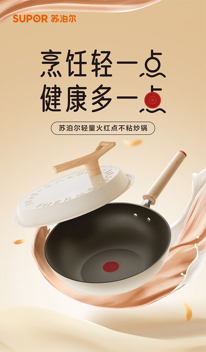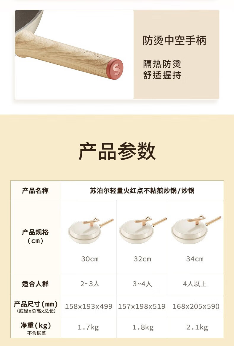 苏泊尔(SUPOR)炒锅火红点不粘锅轻量不沾炒菜锅无油烟家用锅家用不粘锅 PJ26QL1煎锅 26cm