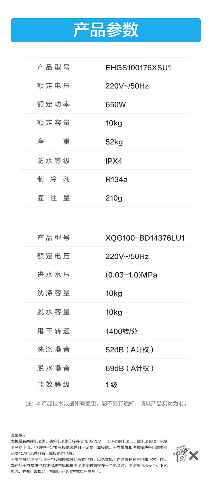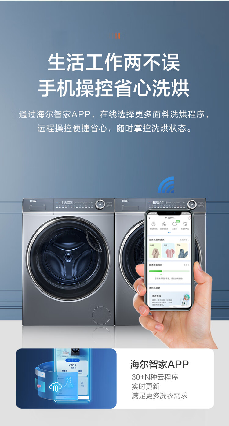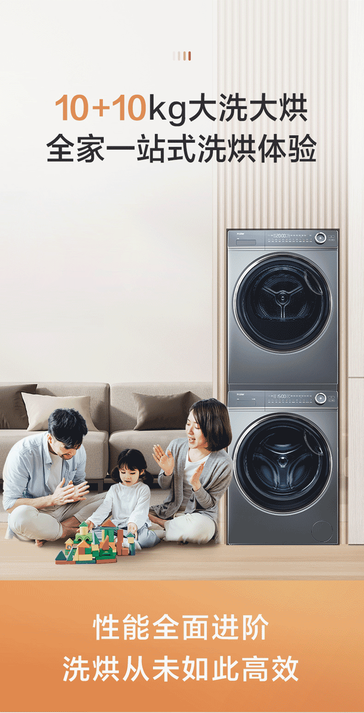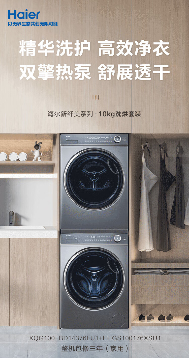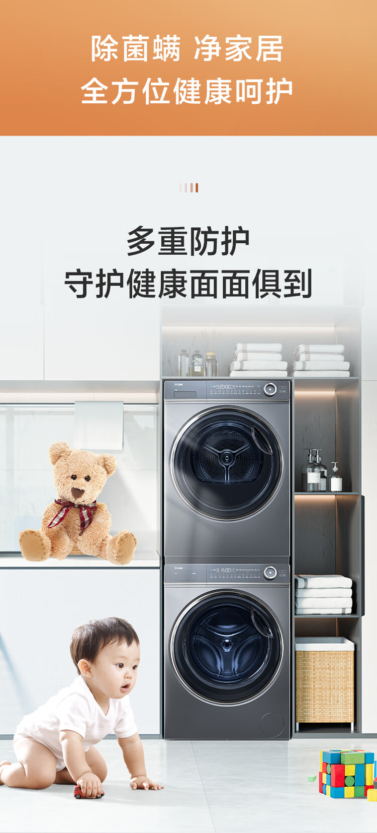 海尔云溪376洗烘套装 10Kg精华洗直驱滚筒洗衣机+双擎热泵烘干机 光等离子除菌 BD14376LU1+176XSU1