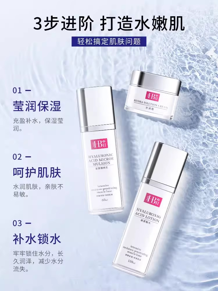 康俪美 HB黄金养肤套(玻尿酸水100ml、玻尿酸微乳60ml、水润霜50g)