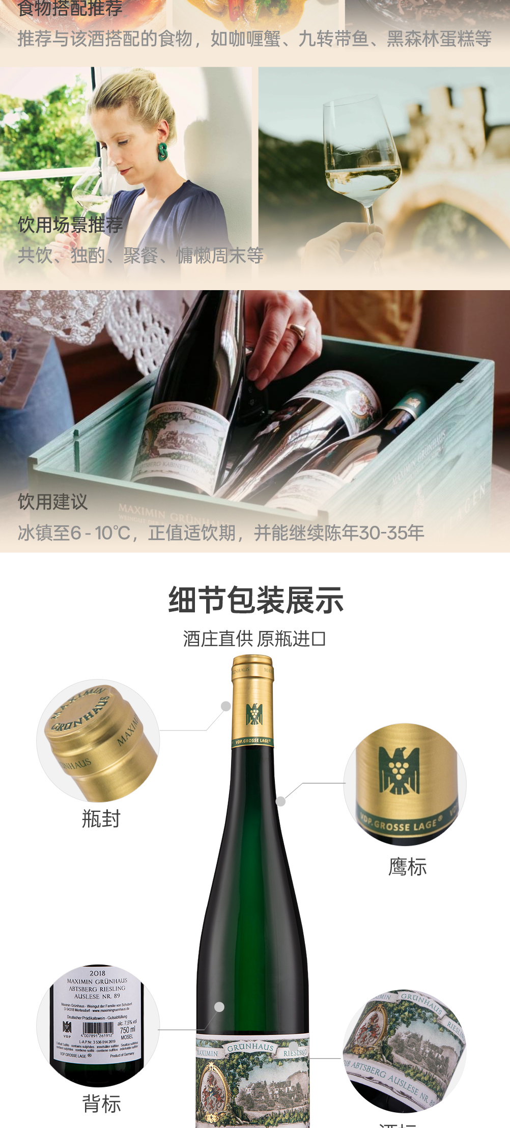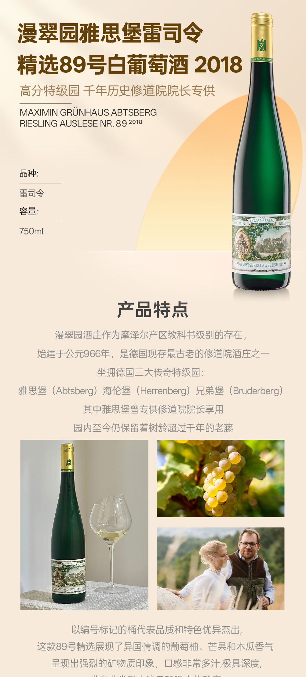 漫翠园雅思堡雷司令精选89号白葡萄酒2018 甜型7.5%vol 750ml