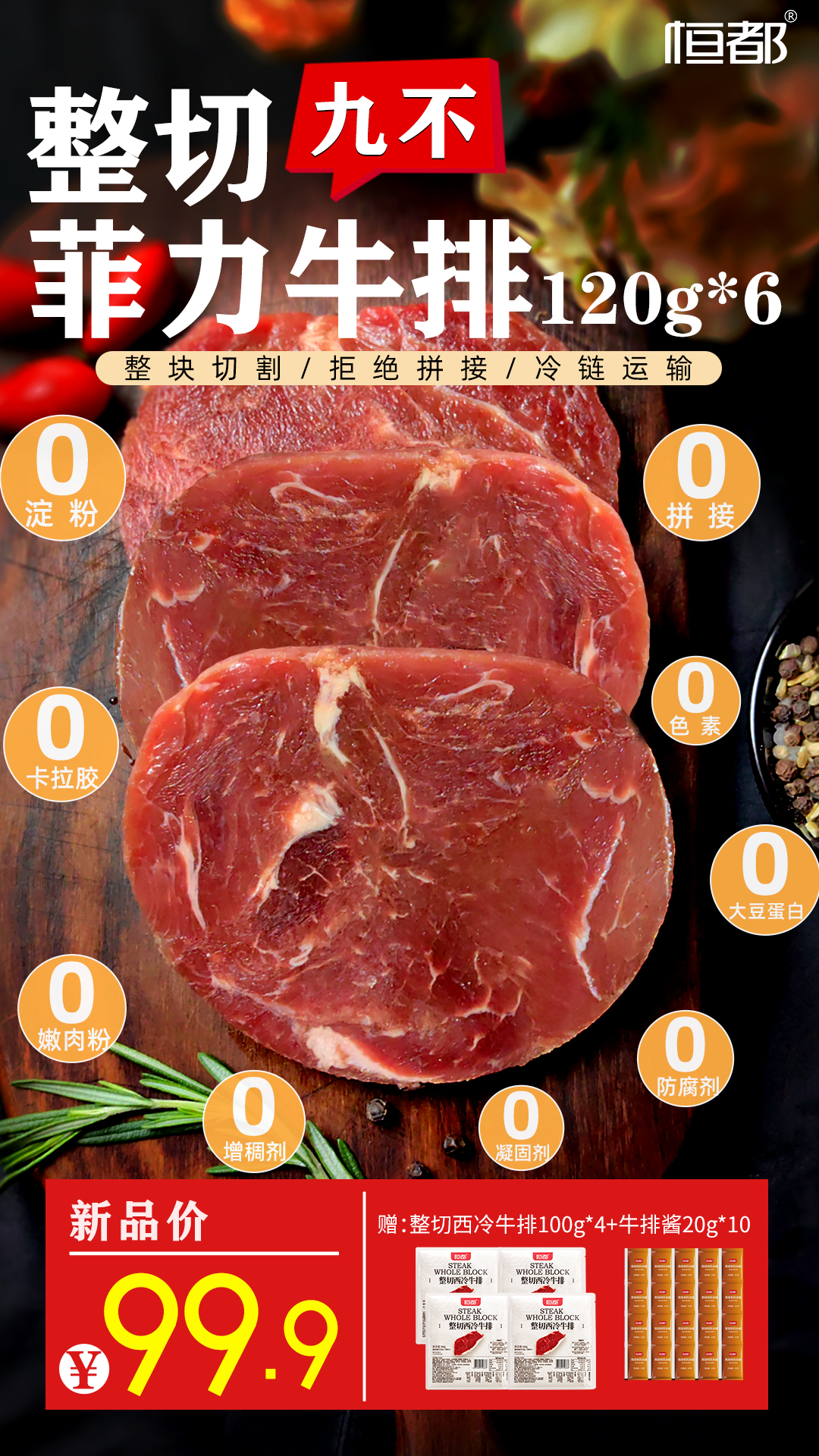 九不整切菲力牛排120g*6+整切西冷*4+牛排酱10