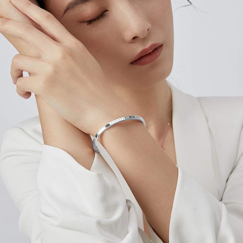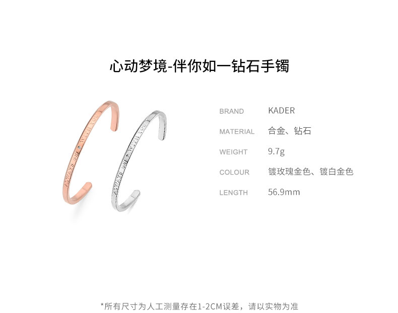 卡蒂罗KADER 一直爱镶宝石情侣手镯 简约个性手镯一对 男女同款情侣款 情侣礼物