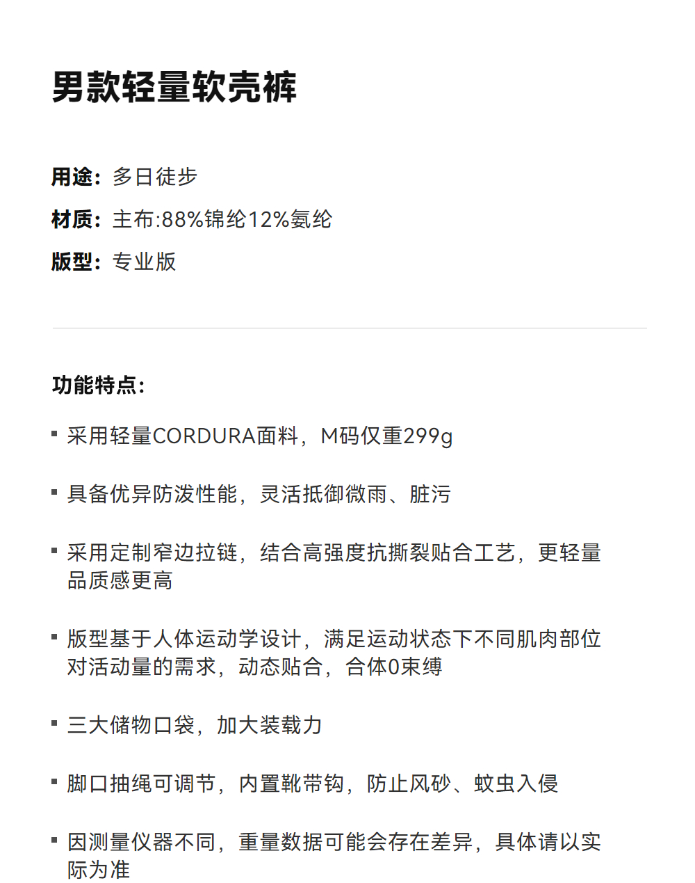 KAILAS凯乐石 男款轻量软壳裤 KG2439317
